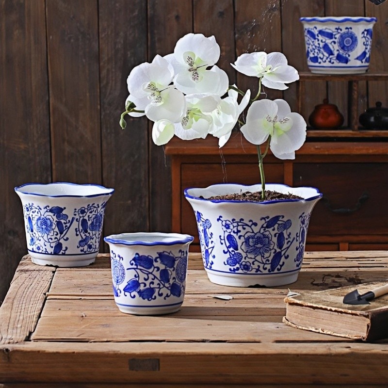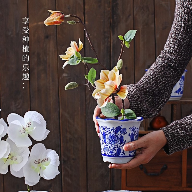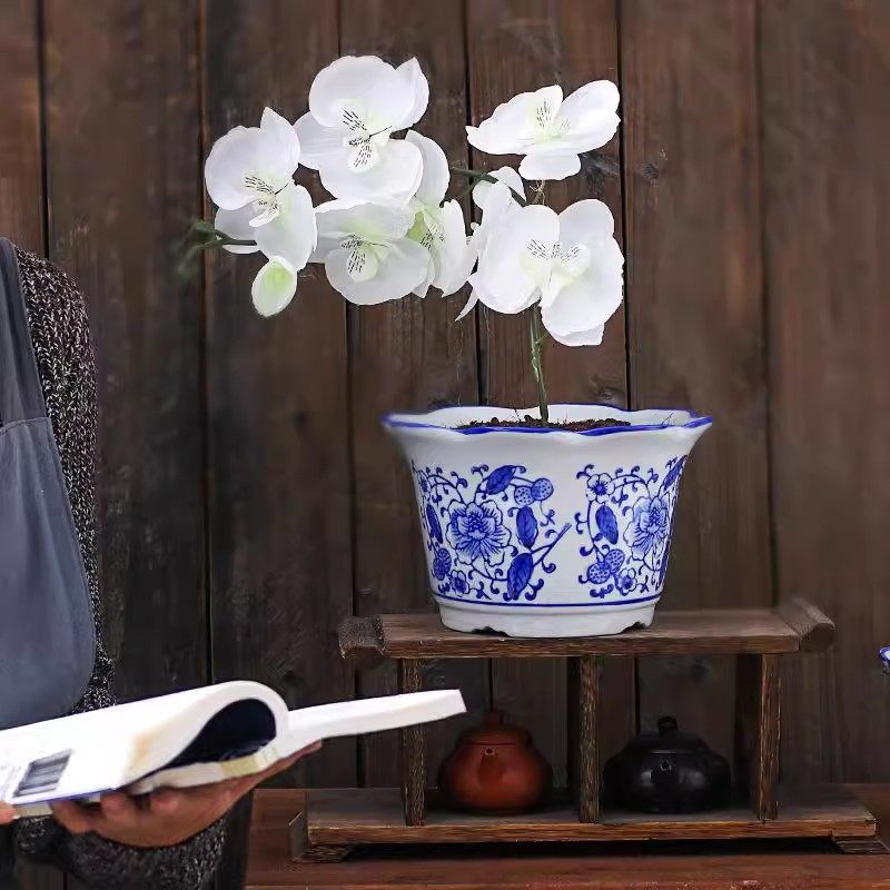 花盆陶瓷大号青花瓷创意复古多肉花盆个性中国风多肉兰花送托盘
