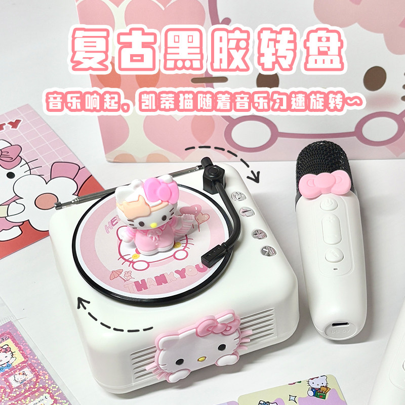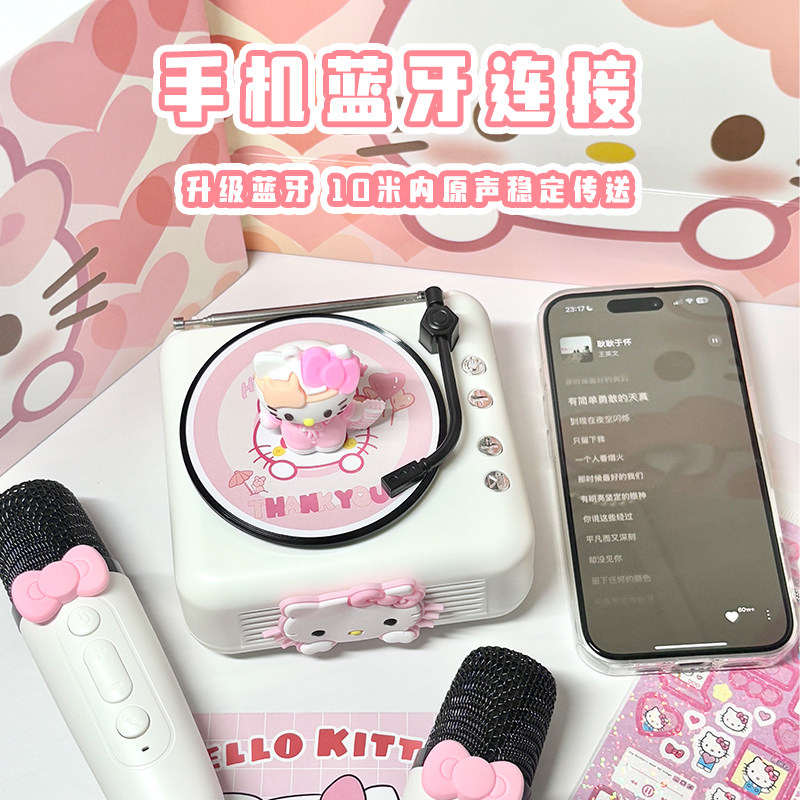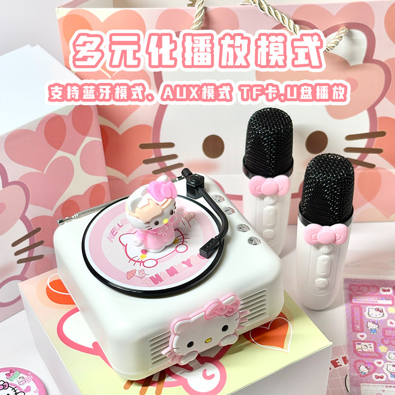 hellokitty唱片机蓝牙音箱麦克风话筒唱k音响生日礼物送女生闺蜜