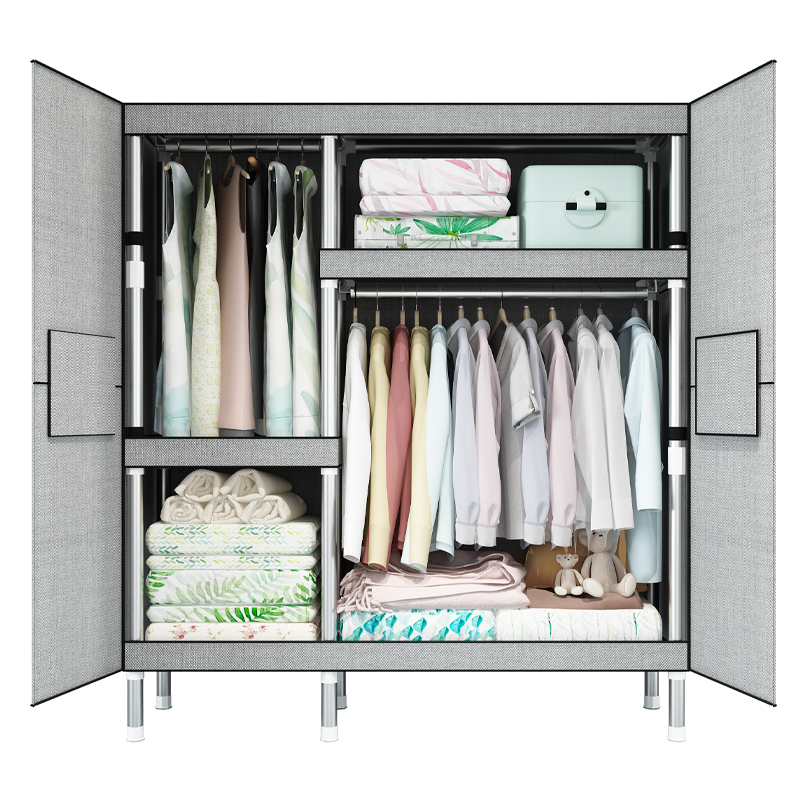 简易衣柜布衣柜钢管加粗加固家用卧室现代简约收纳布艺柜子挂衣橱