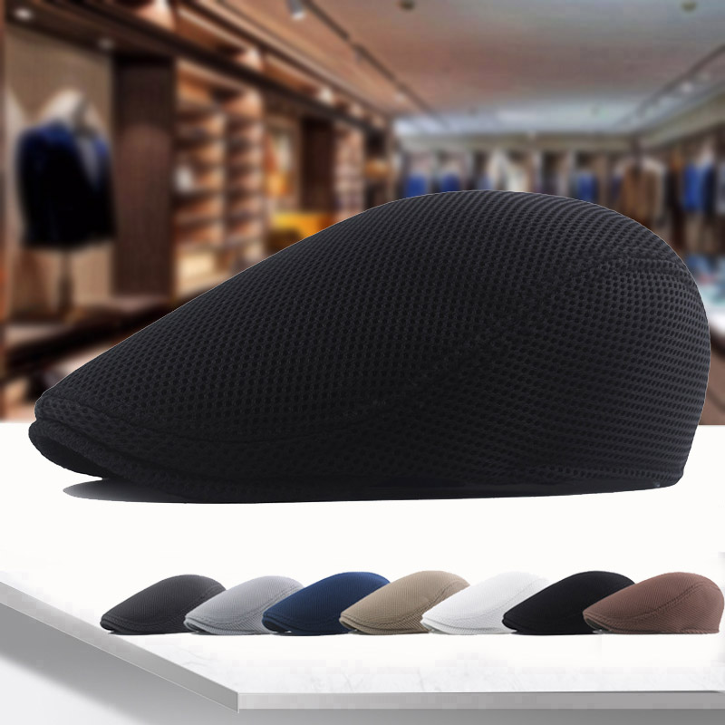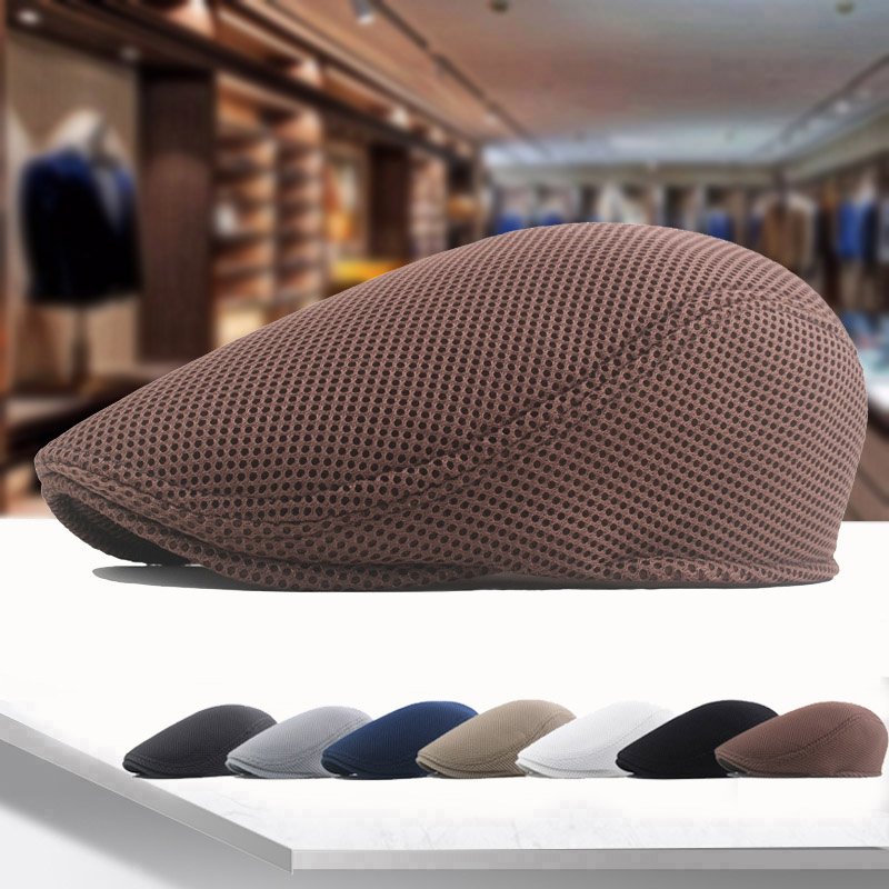 中老年帽子男遮阳户外网眼透气薄贝雷帽夏季休闲前进帽爸爸报童帽