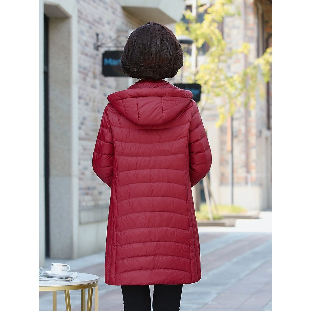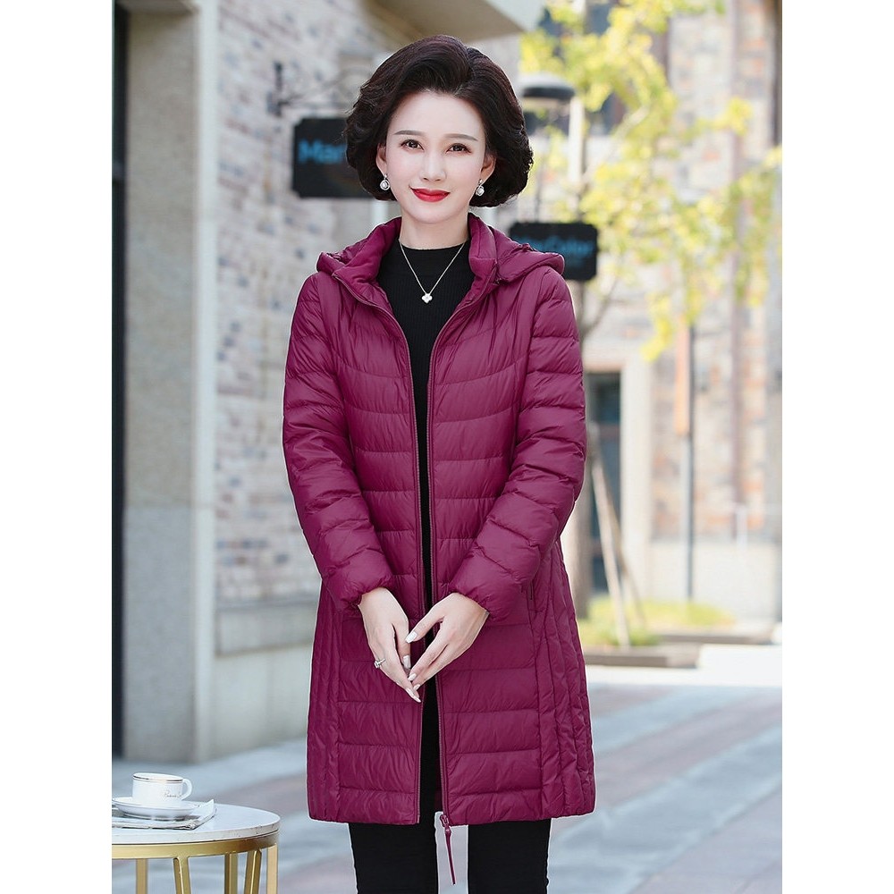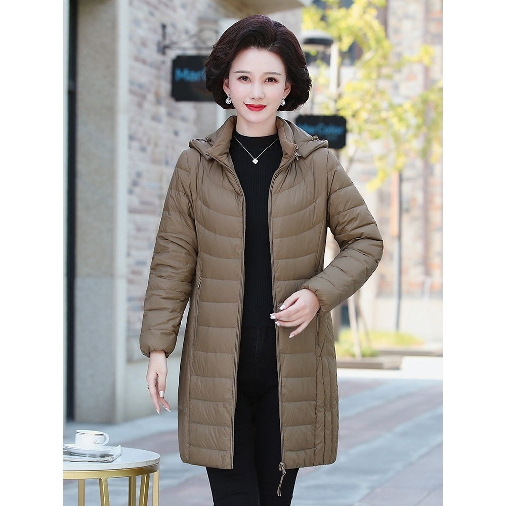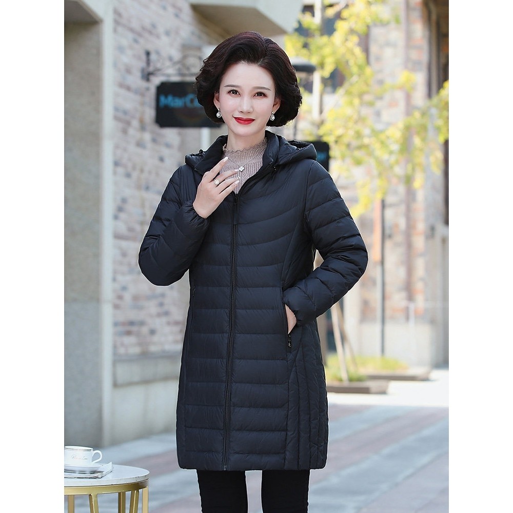 凯乐石薄荷新款羽绒服女中长款妈妈装轻薄款脱卸帽洋气中老年宽松