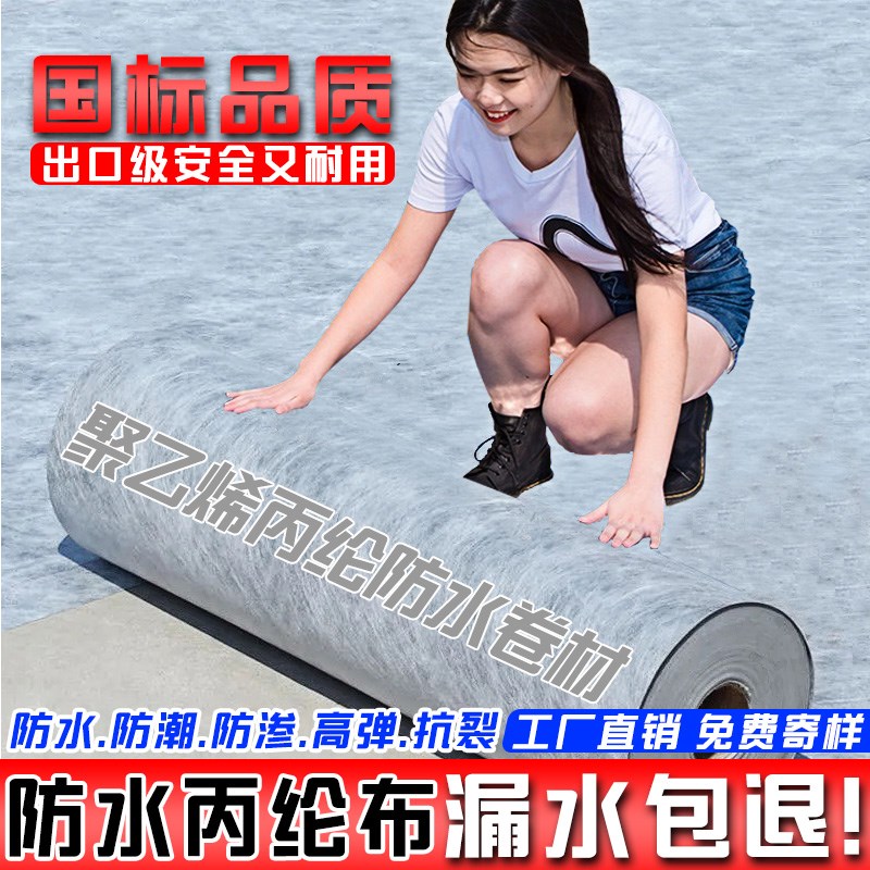 丙纶防水卷材聚乙烯高分子涤纶布屋顶G专用补漏卫生间地面防潮材