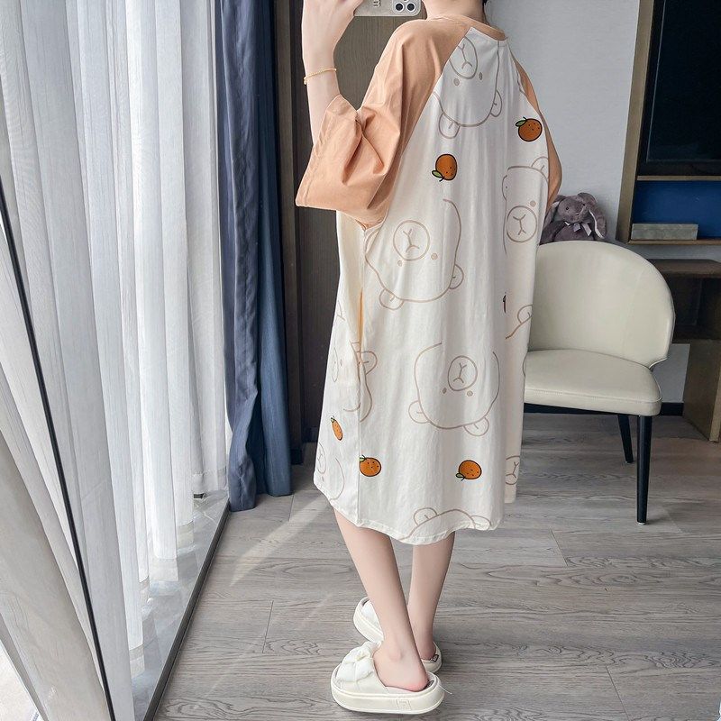 夏季短袖睡裙女纯棉卡通加大码胖mm200斤可爱宽松薄款孕妇家居服