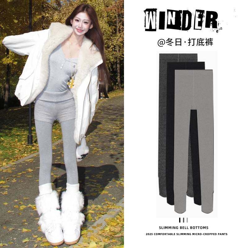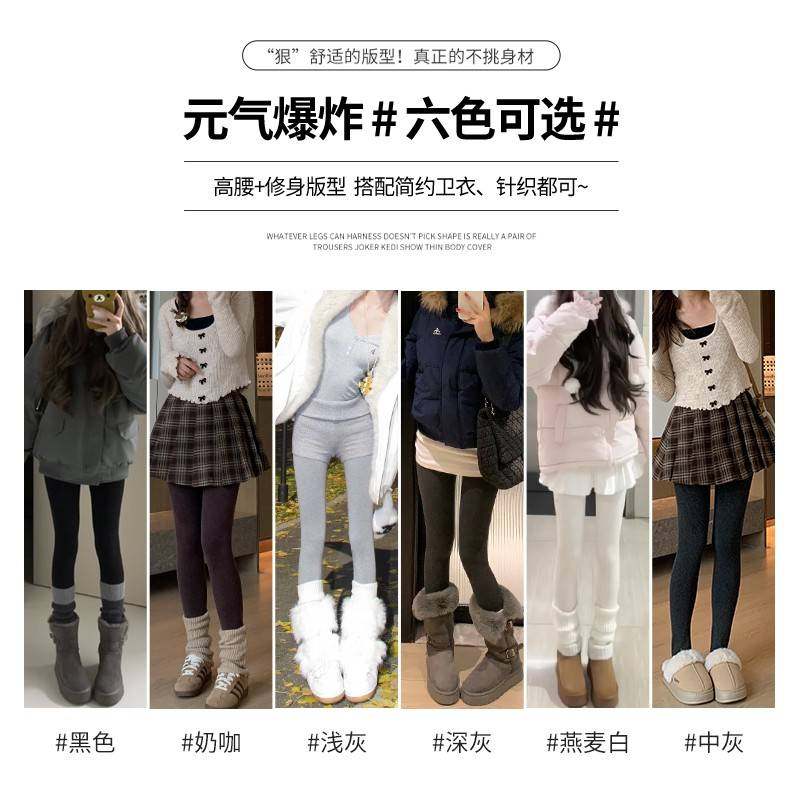 灰色加绒打底裤女冬外穿2025新款高腰紧身连脚秋裤保暖加厚棉裤袜
