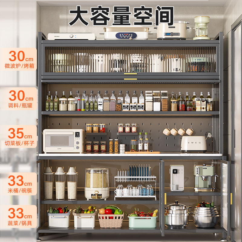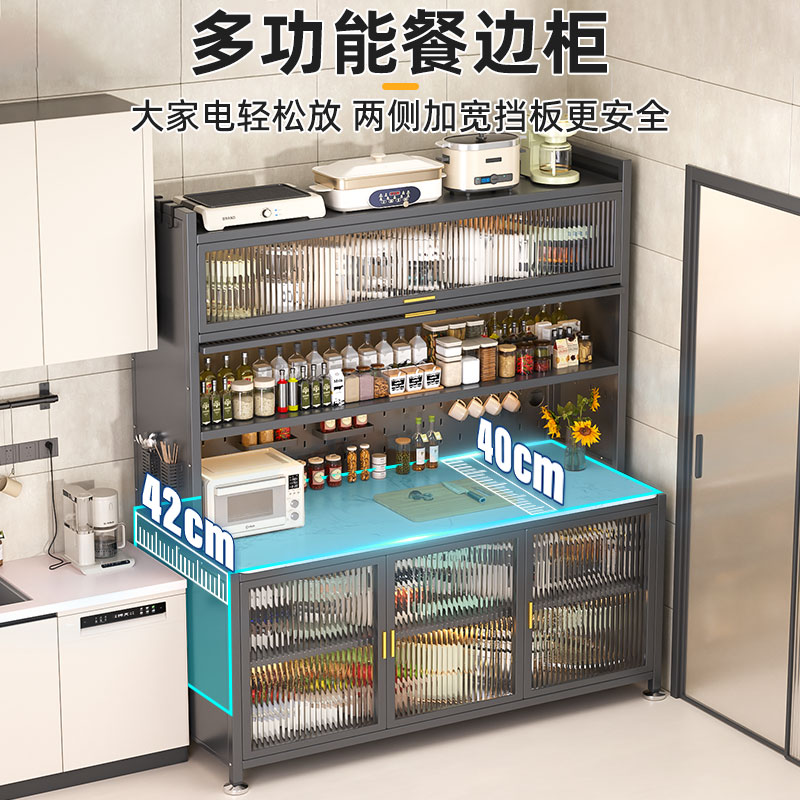 厨房多功能置物架落地多层岩板橱柜家用微波炉烤箱餐边收纳储物柜