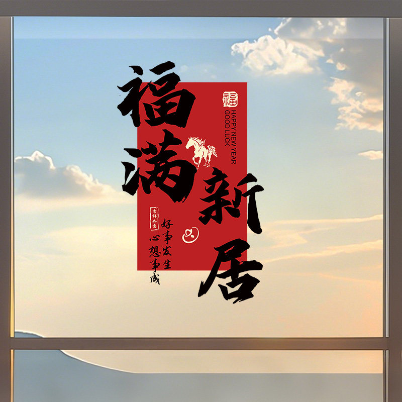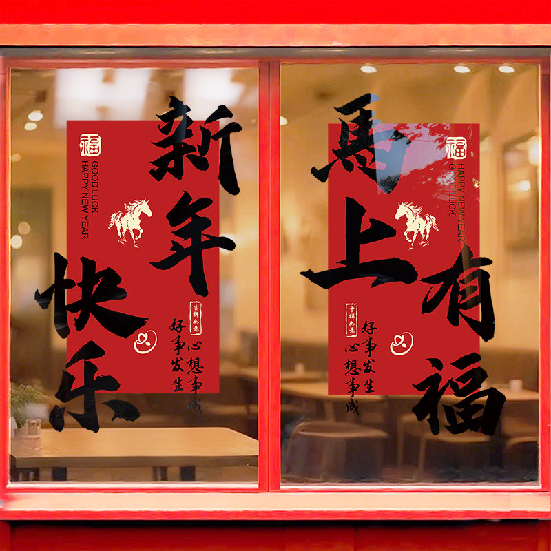 2026马年过年窗户门贴纸物业公司过年橱窗窗花新年装饰玻璃贴静电