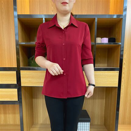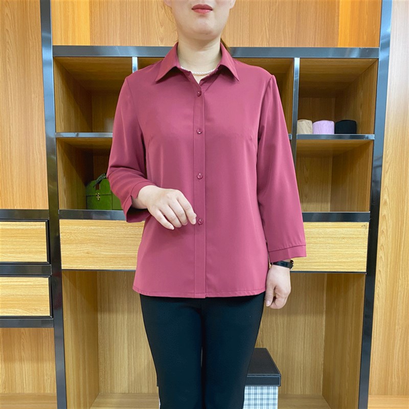 妈妈衬衫女中年女装夏装衬衣翻领雪纺衫九分袖上衣中老年薄款小衫