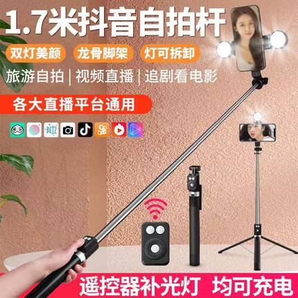 1.7米自拍杆三脚架可充电蓝牙遥控器手持拍抖音直播落地手机支架