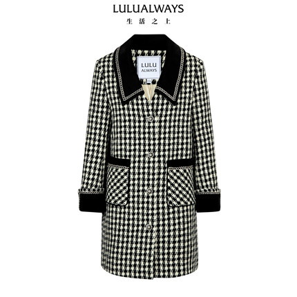 LULUALWAYS【商场同款】25冬季新款复古优雅千鸟格长款外套女大衣