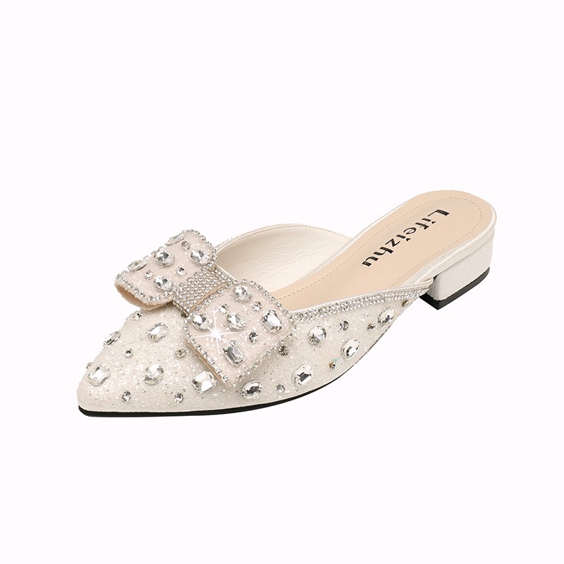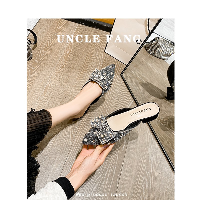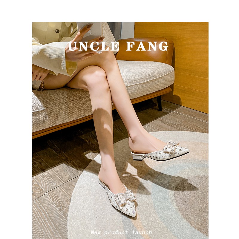 包头半拖鞋女夏外穿时p尚2025新款懒人后空半托单鞋平底尖头凉拖