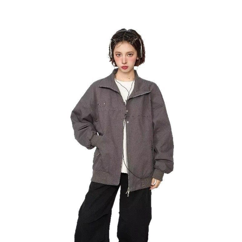 复古工装夹克高街底特律外套飞行员女款男上衣男翻领宽松潮牌美式