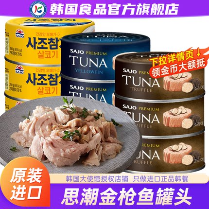 韩国进口思潮金枪鱼罐头深海黄鳍油浸水浸吞拿鱼三文鱼拌饭寿司