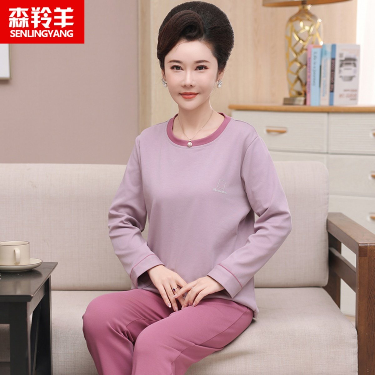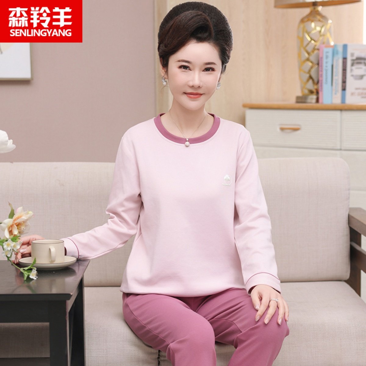 中年妈妈睡衣女春秋款女士纯棉长袖休闲套头全棉家居服套装可外穿