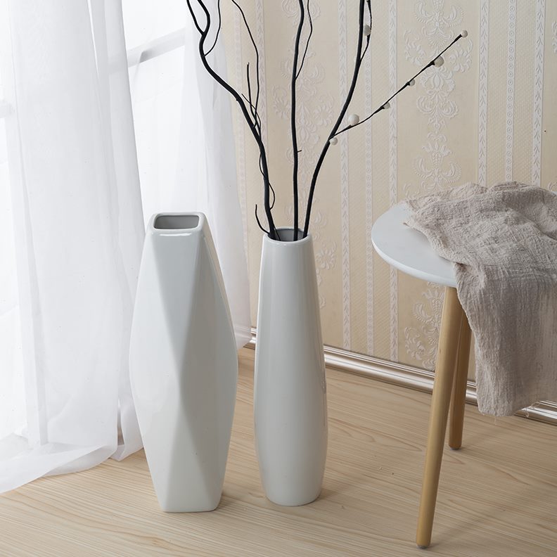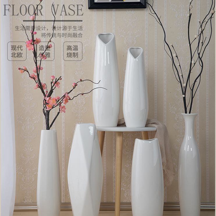 大号落地插花50 cm陶瓷花瓶器 酒店客厅家用摆件40白色cm装饰