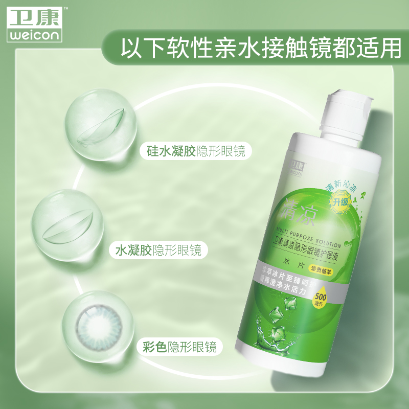 卫康清凉新视500ML*2+125ML多功能隐形近视眼镜护理液美瞳清洁