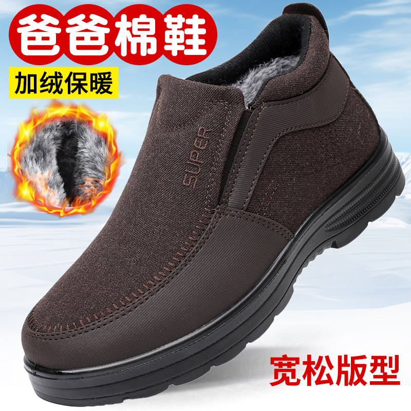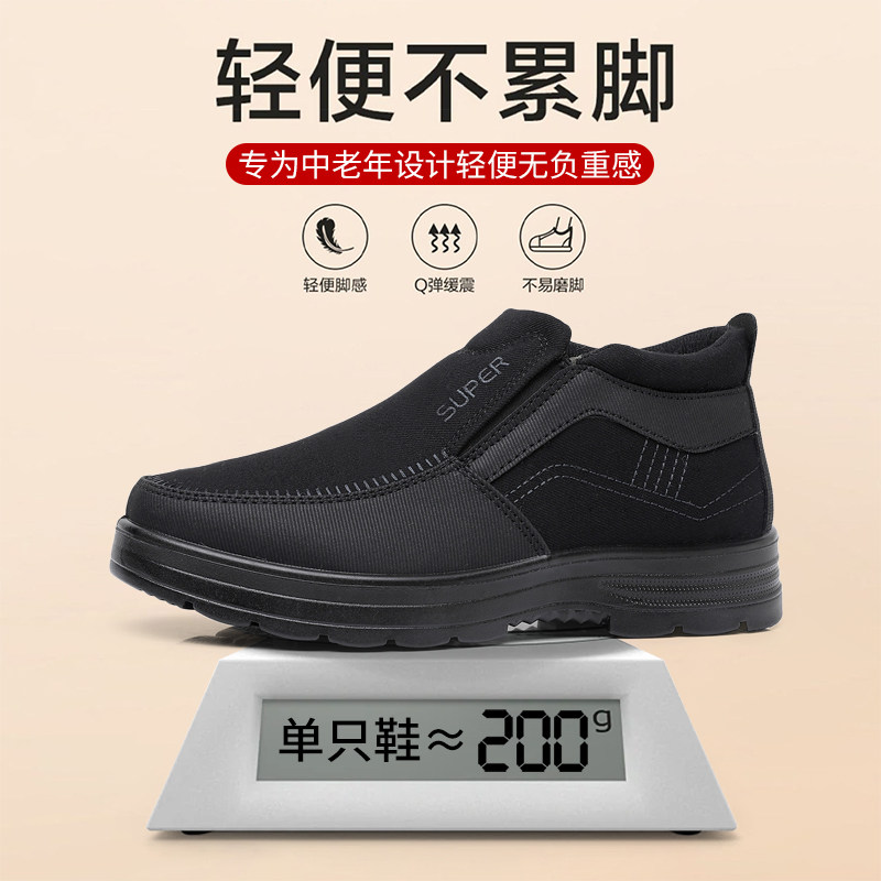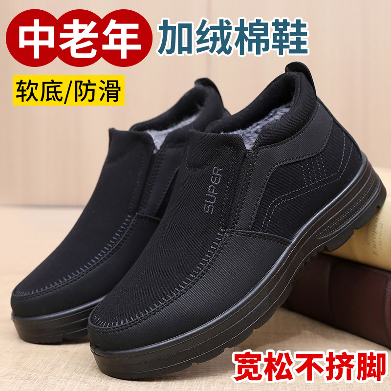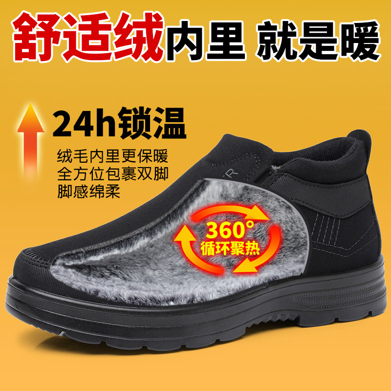 老北京布鞋男冬季加绒保暖爸爸棉鞋中老年软底防滑轻便一脚蹬宽松