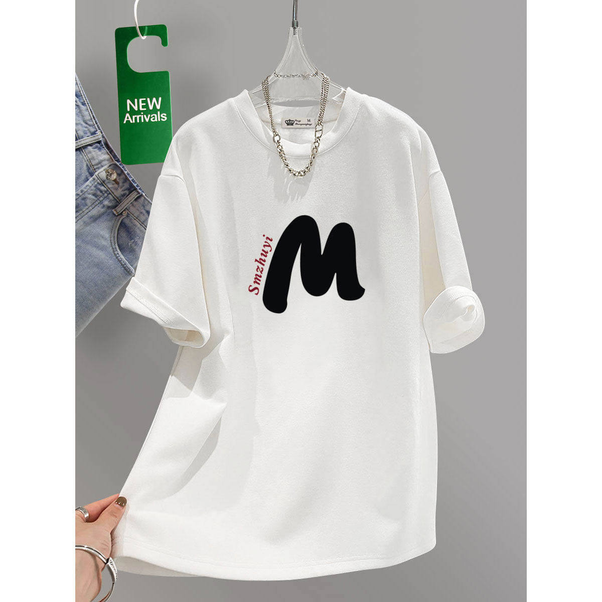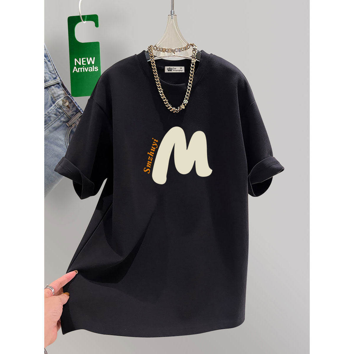 字母潮大版宽松短袖t恤女中长款