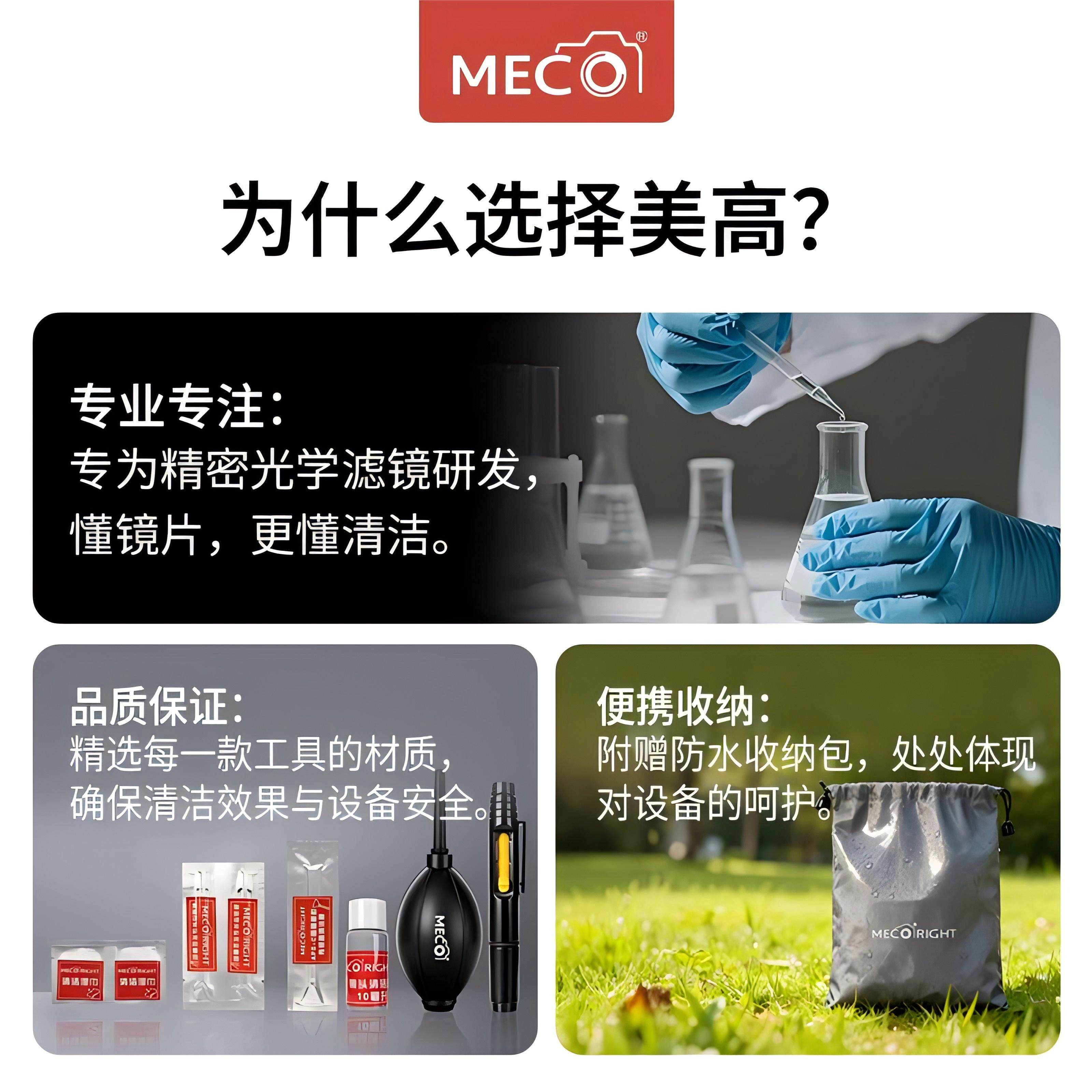 MECO美高相机清洁套装镜头cmos传感器布湿巾气吹棒笔液服务套餐适用蔡司富士佳能尼康数码单反投影仪大疆手机