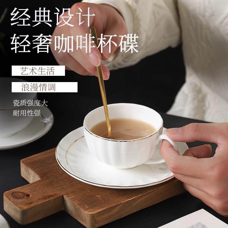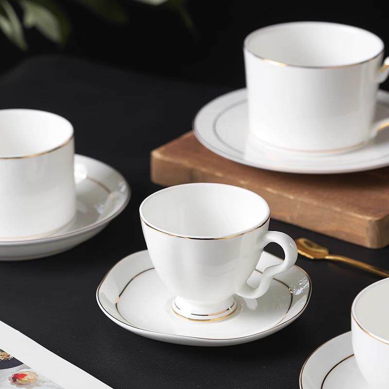 欧式纯白骨瓷咖啡杯套装金边陶瓷英式杯碟酒店下午茶杯牛奶杯商用