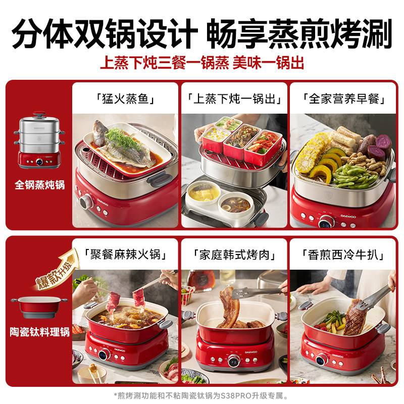 大宇不锈钢分体电蒸锅蒸汽锅多功能料理锅隔水炖蒸煮一体锅可拆洗
