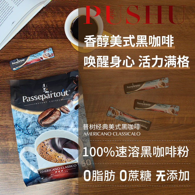 【更低卡】普树经典美式黑咖啡速溶苦无添加蔗糖0脂越南进口 50条