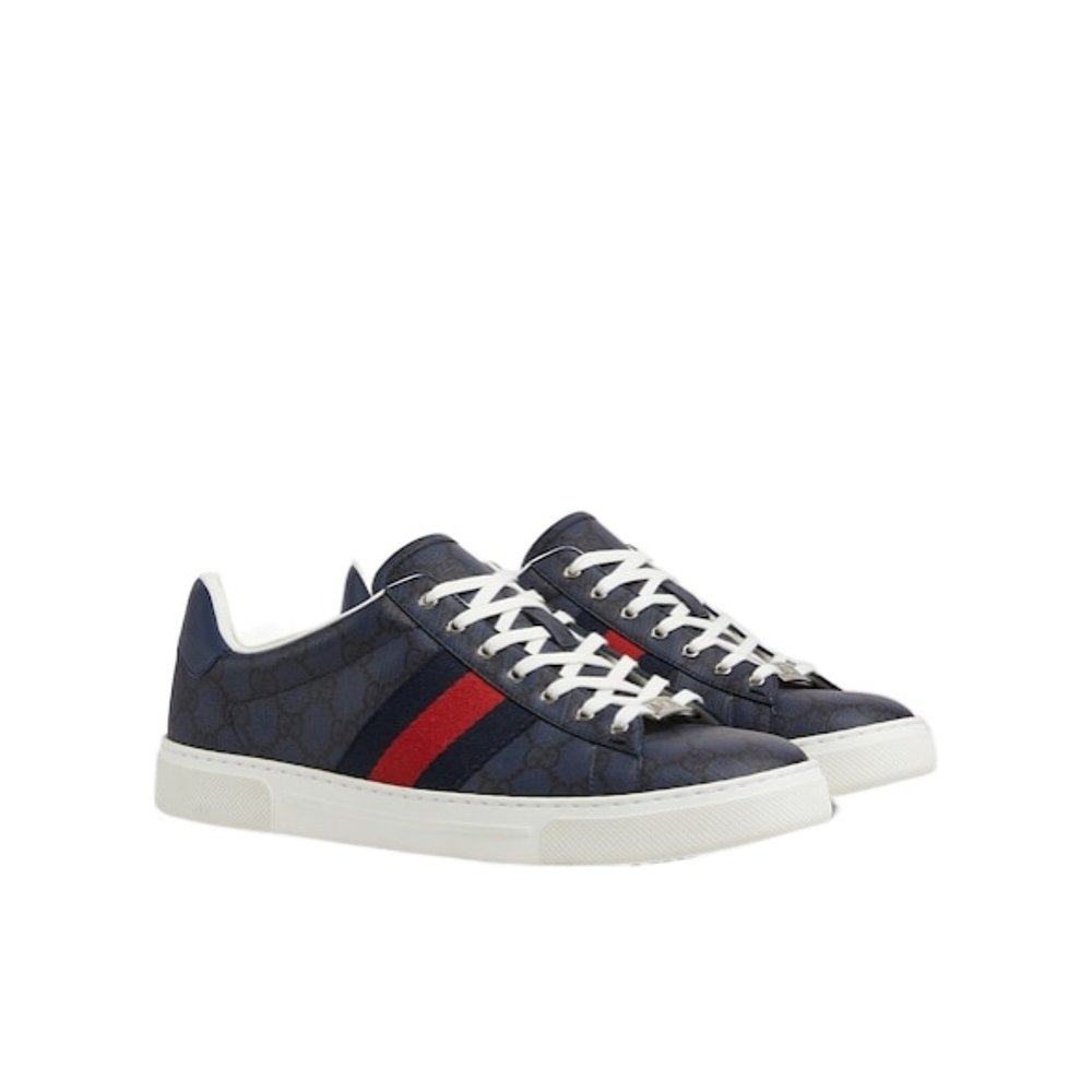 GUCCI 男士休闲鞋 760775FAELM8741 CO 蓝色 Ace 织带运动鞋