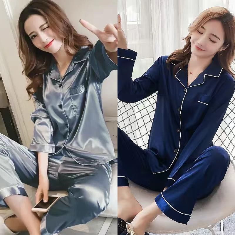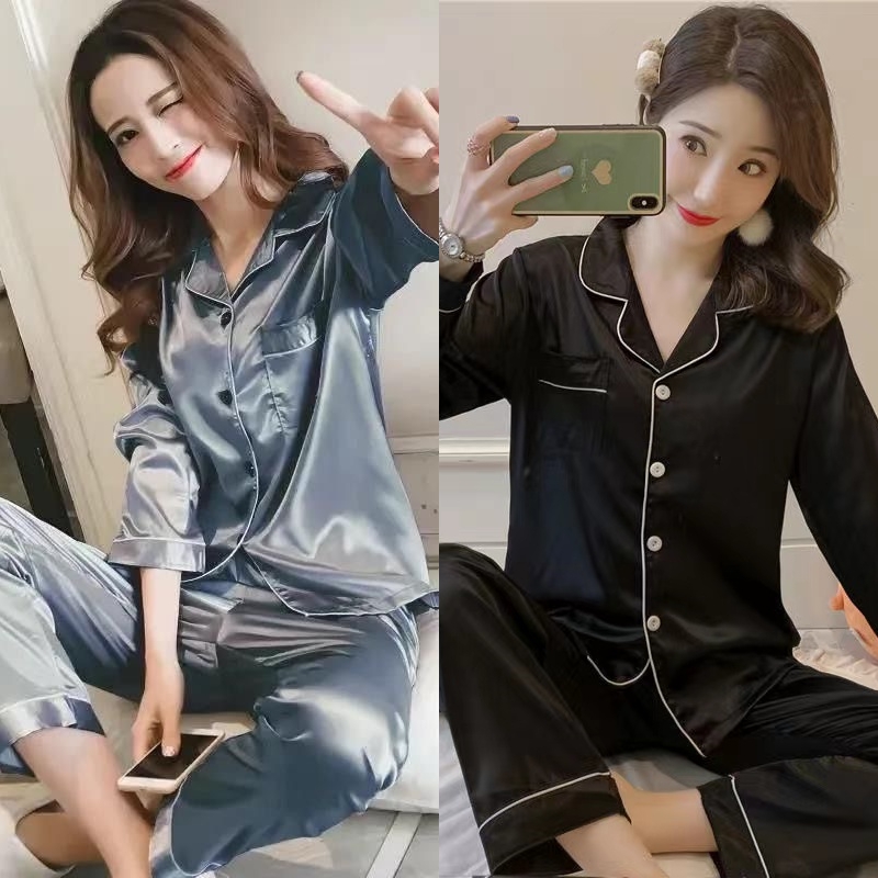 M-5XL 睡衣女春夏冰丝韩版性感长袖加大码秋冬季仿真丝短袖家居服