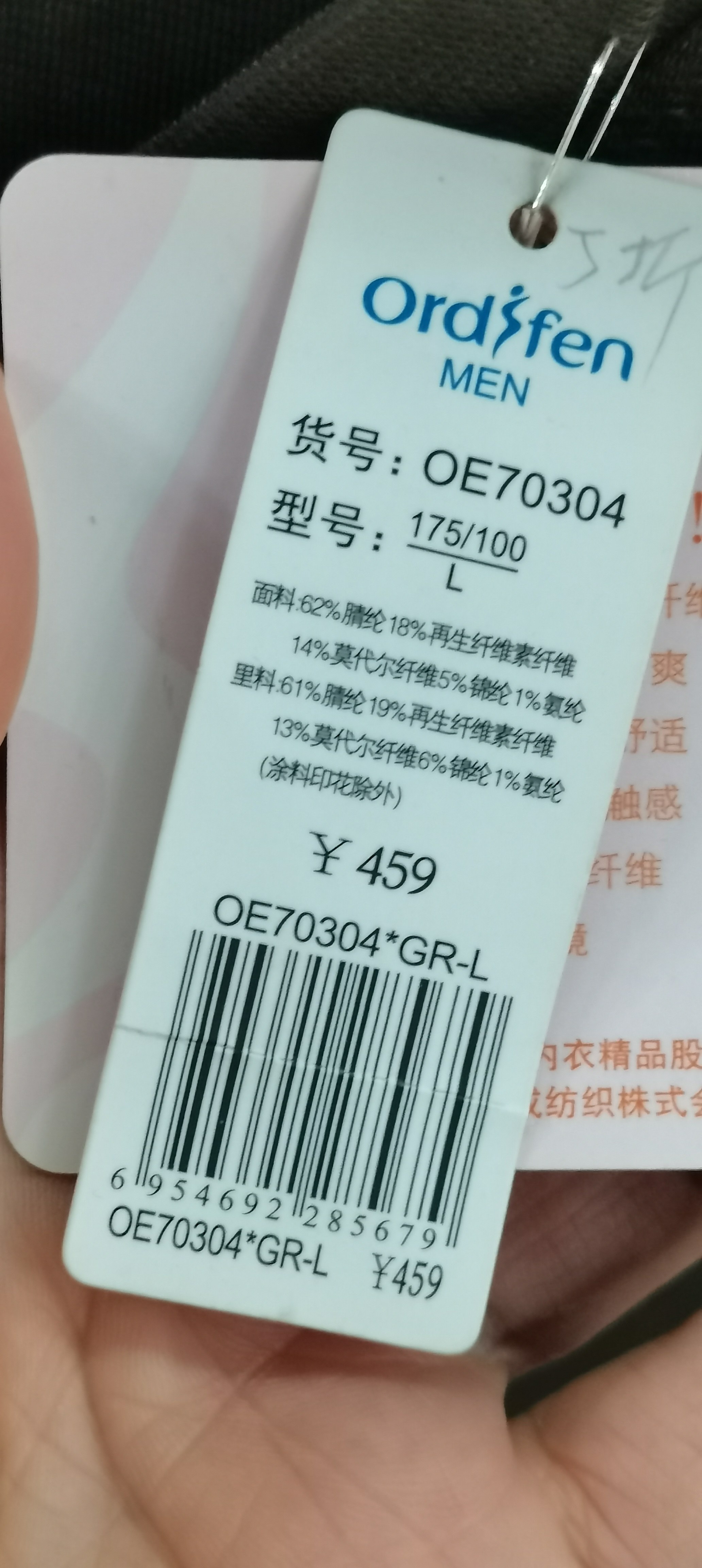 欧迪芬断码清仓男士大圆领长袖保暖上衣打底衫OE70304吊牌459