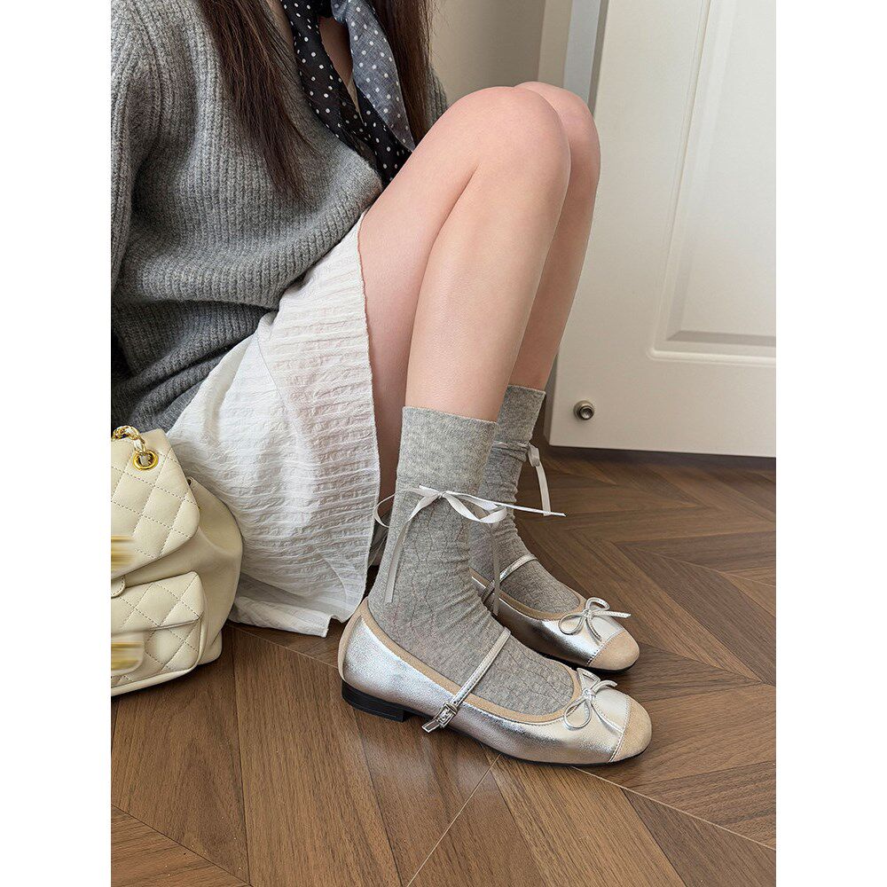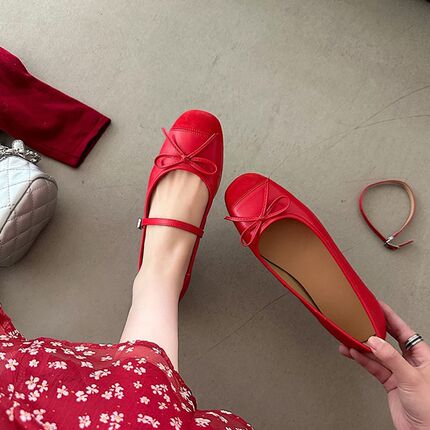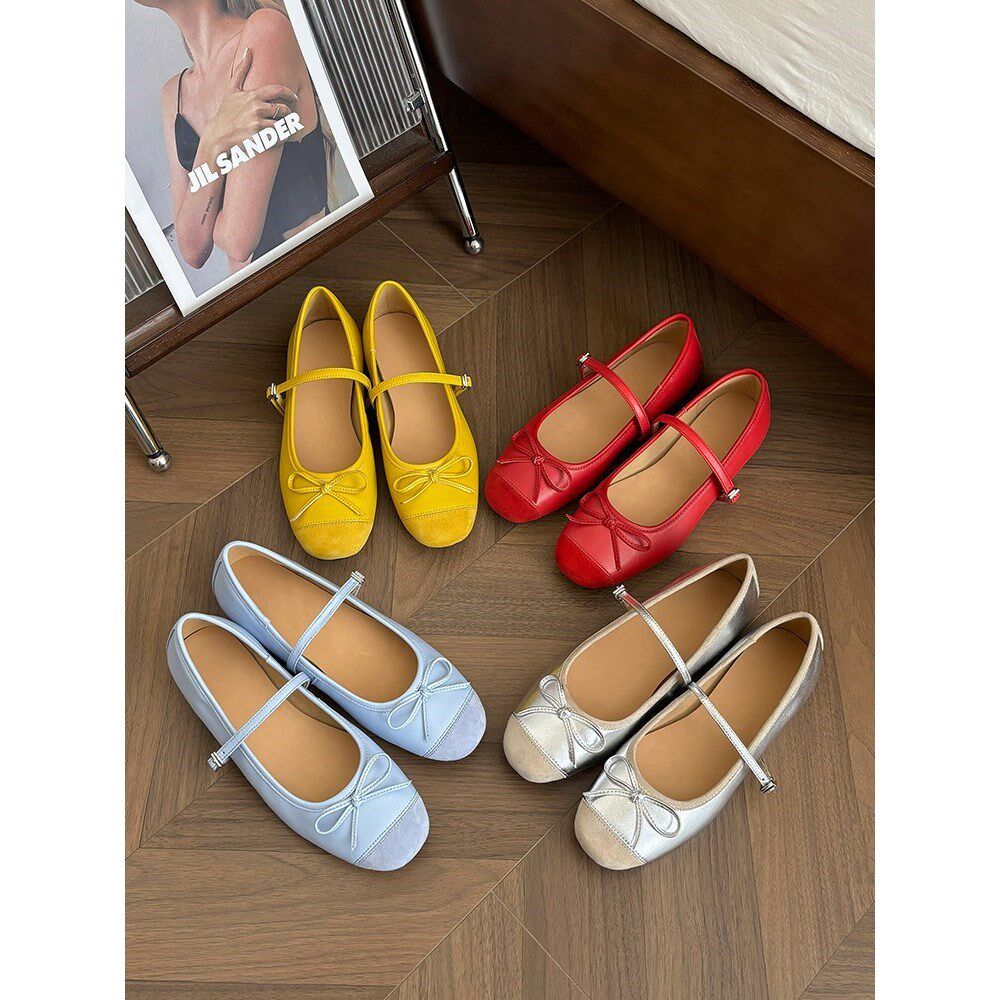 法式浅口平底芭蕾舞鞋2026春季新款蝴蝶结仙女风一字带玛丽珍鞋