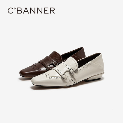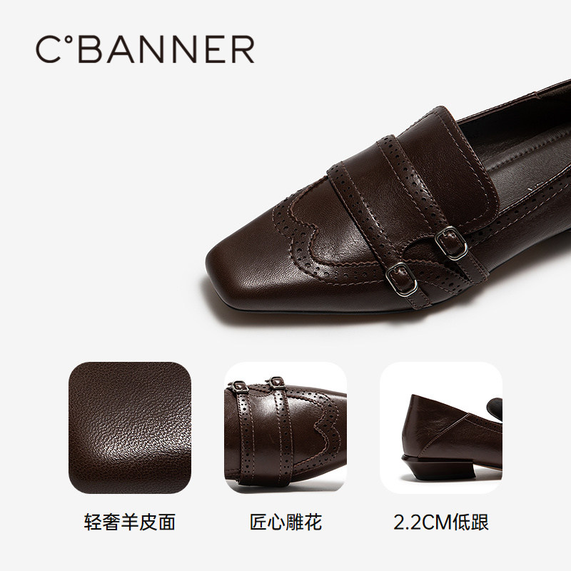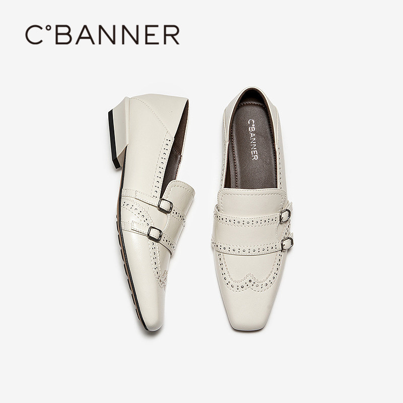 千百度羊皮英伦风布洛克小皮鞋乐福鞋女2026春季新款通勤低跟单鞋