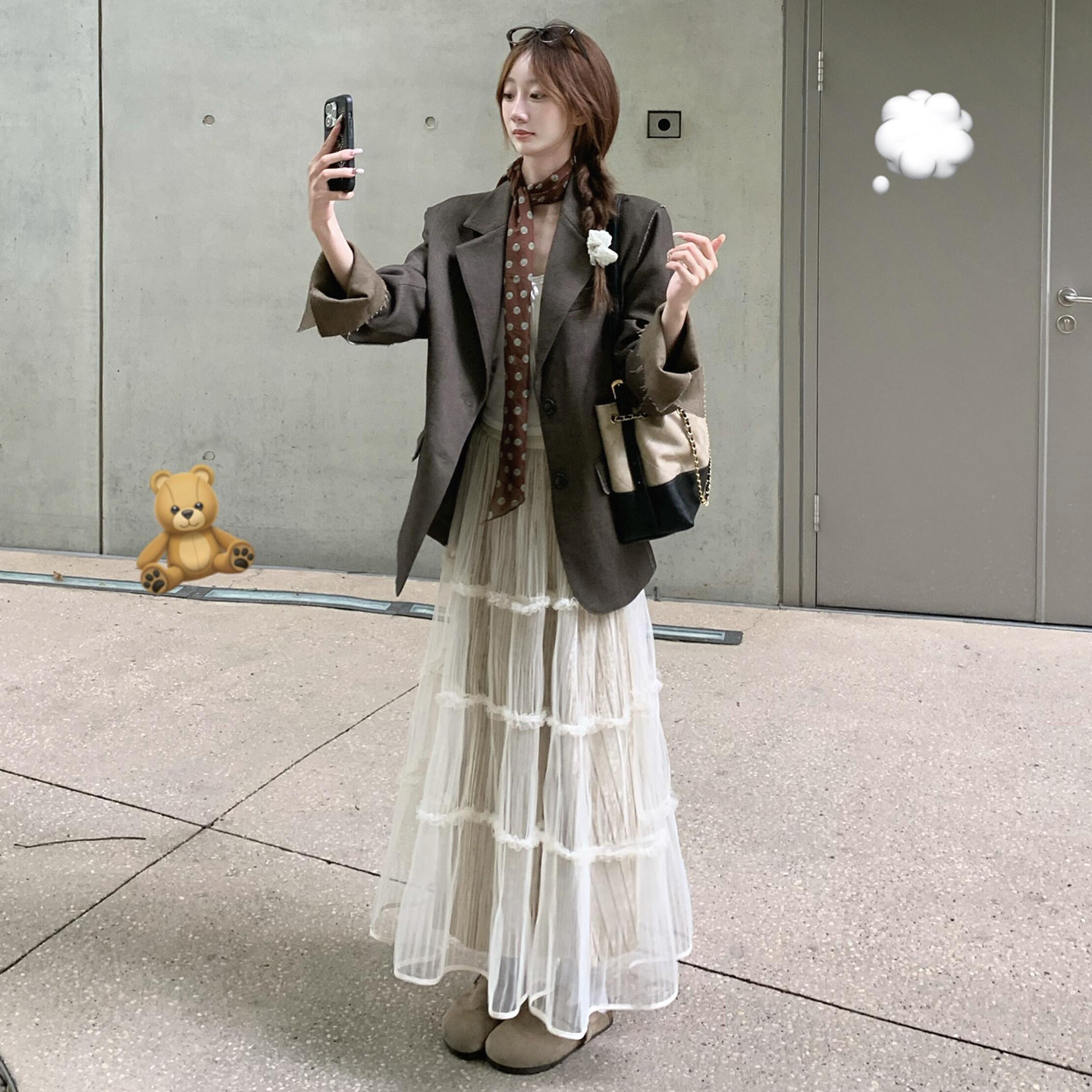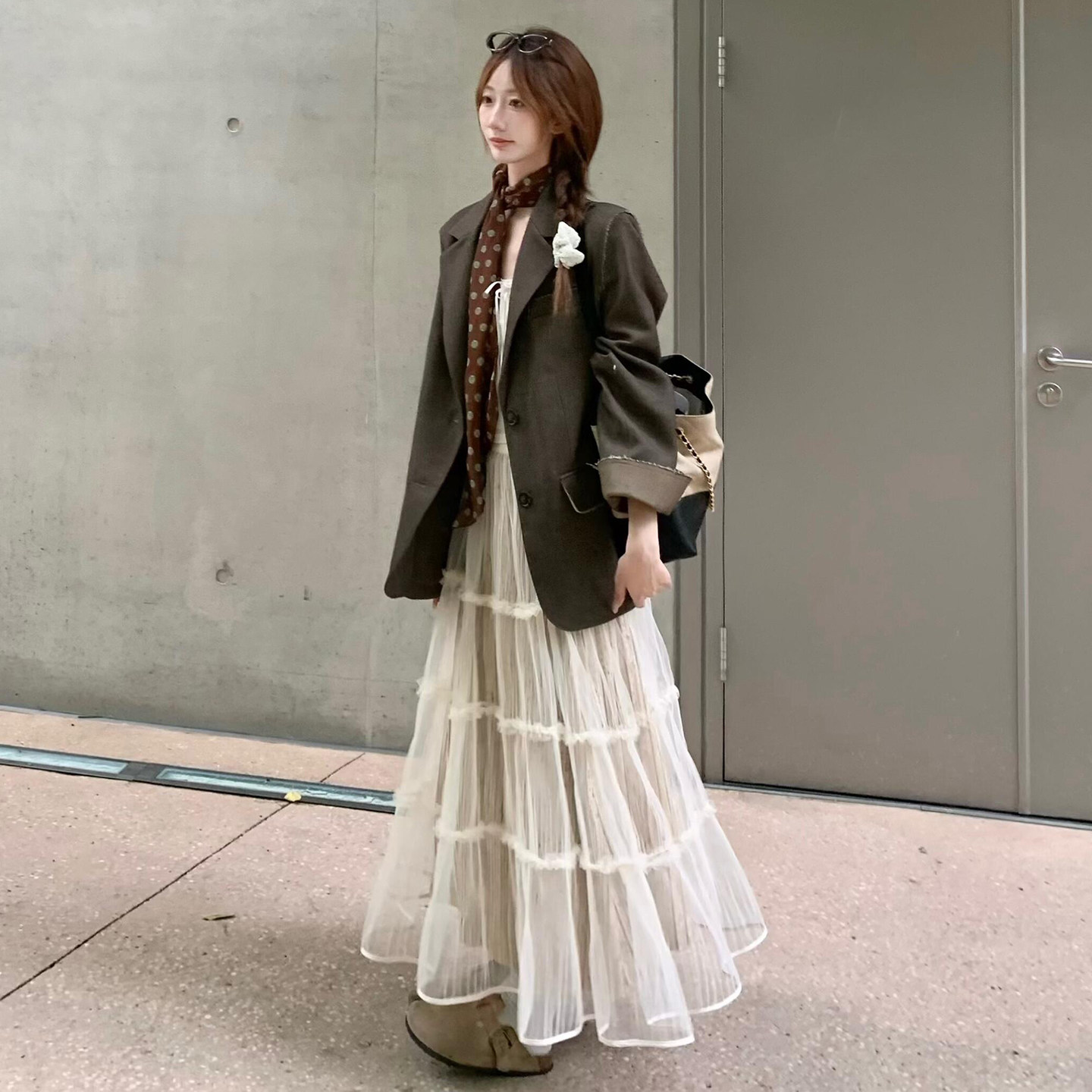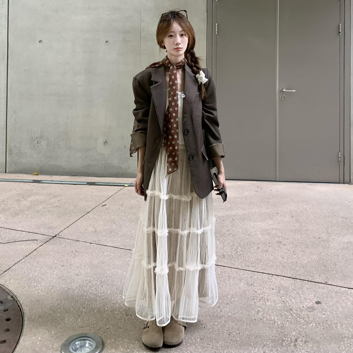 重工网纱拼接金丝绒蛋糕裙女秋冬浪漫超仙高级感大裙摆半身裙子
