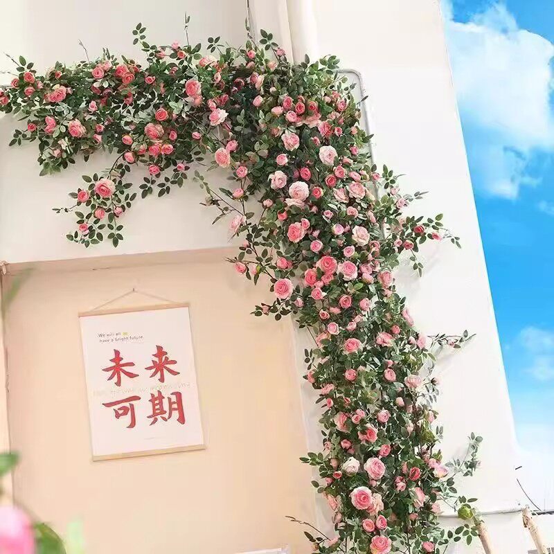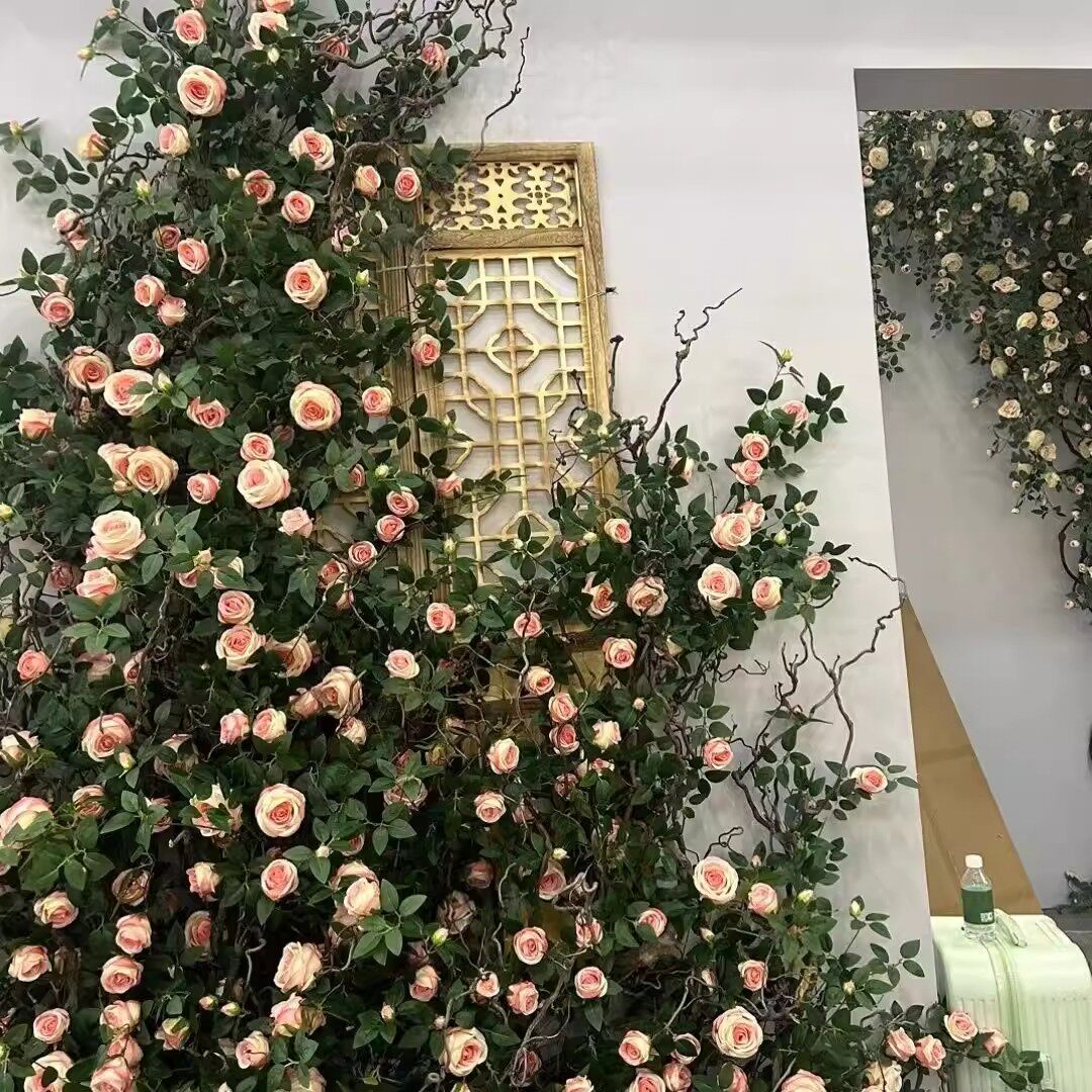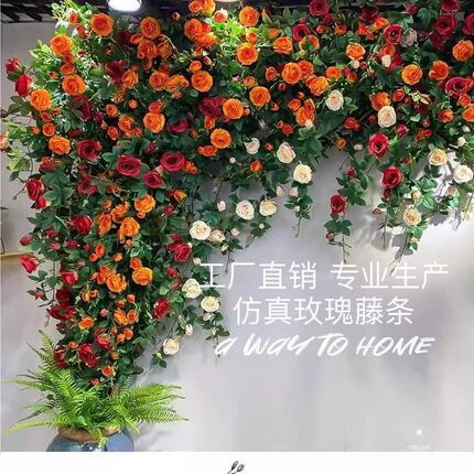 仿真玫瑰花网红花墙瀑布墙壁假花空调管道装饰花藤条遮挡门头藤蔓