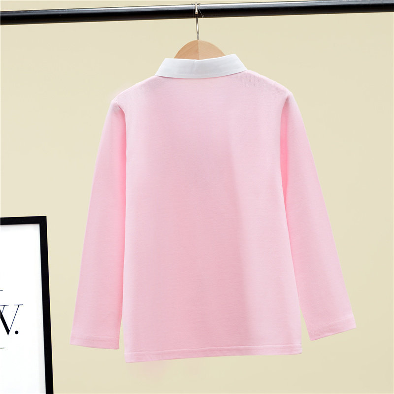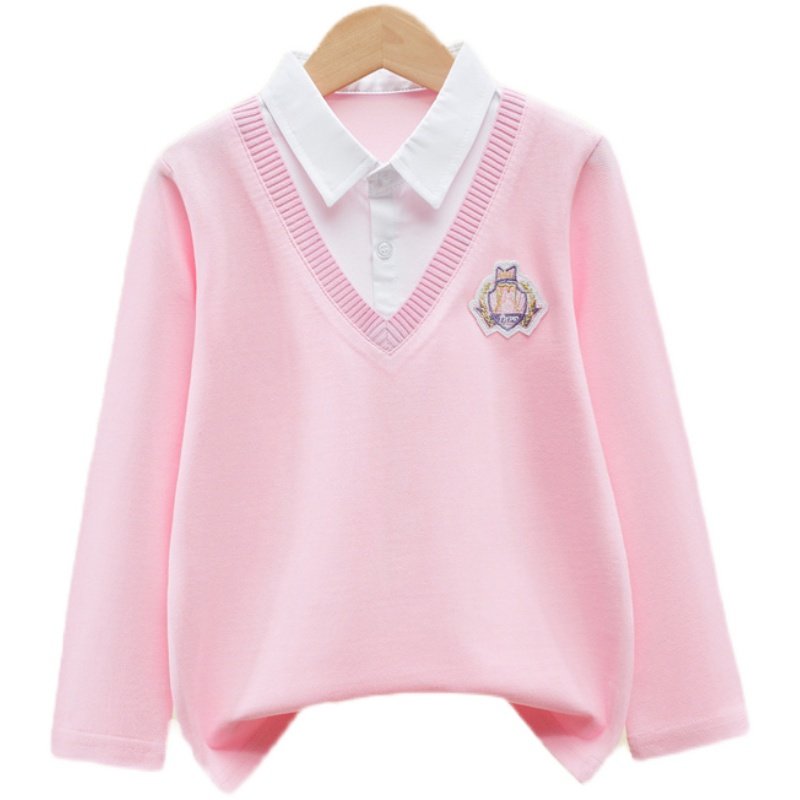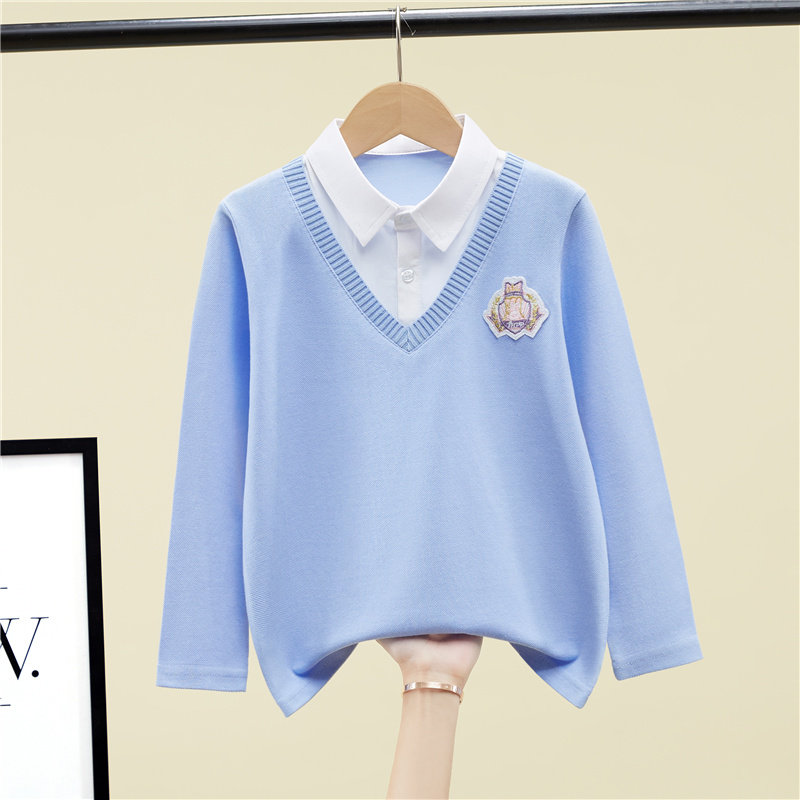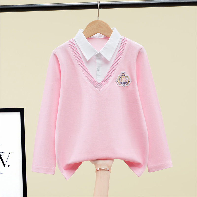 女童t恤长袖纯棉女孩polo衫假两件T恤儿童衬衫翻领打底衫中大童