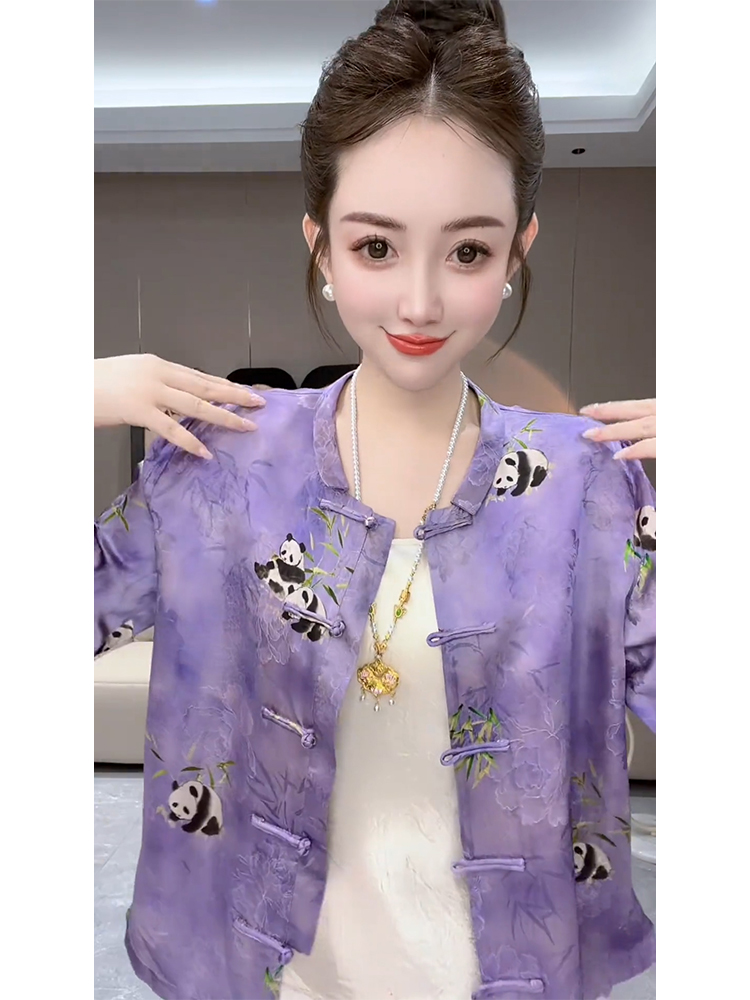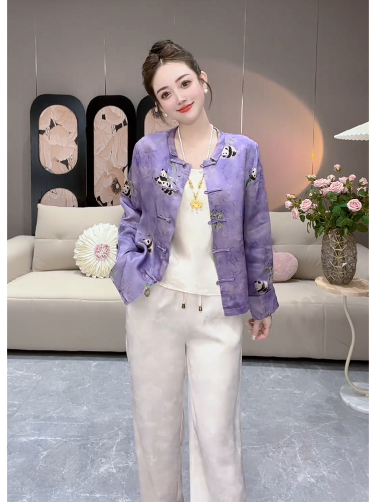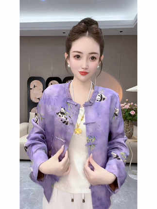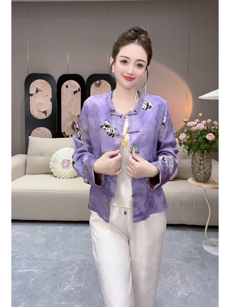 2025秋季高级感超好看减龄漂亮别致独特新中式紫色国风印花外套女
