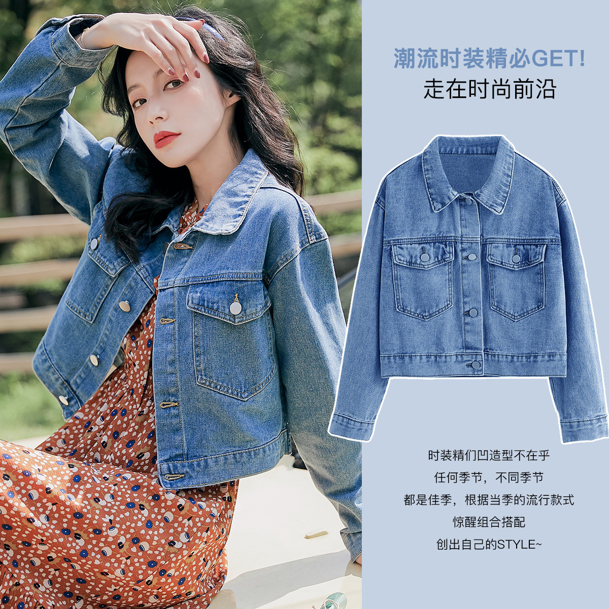 拉夏贝尔秋季新品短款牛仔外套女