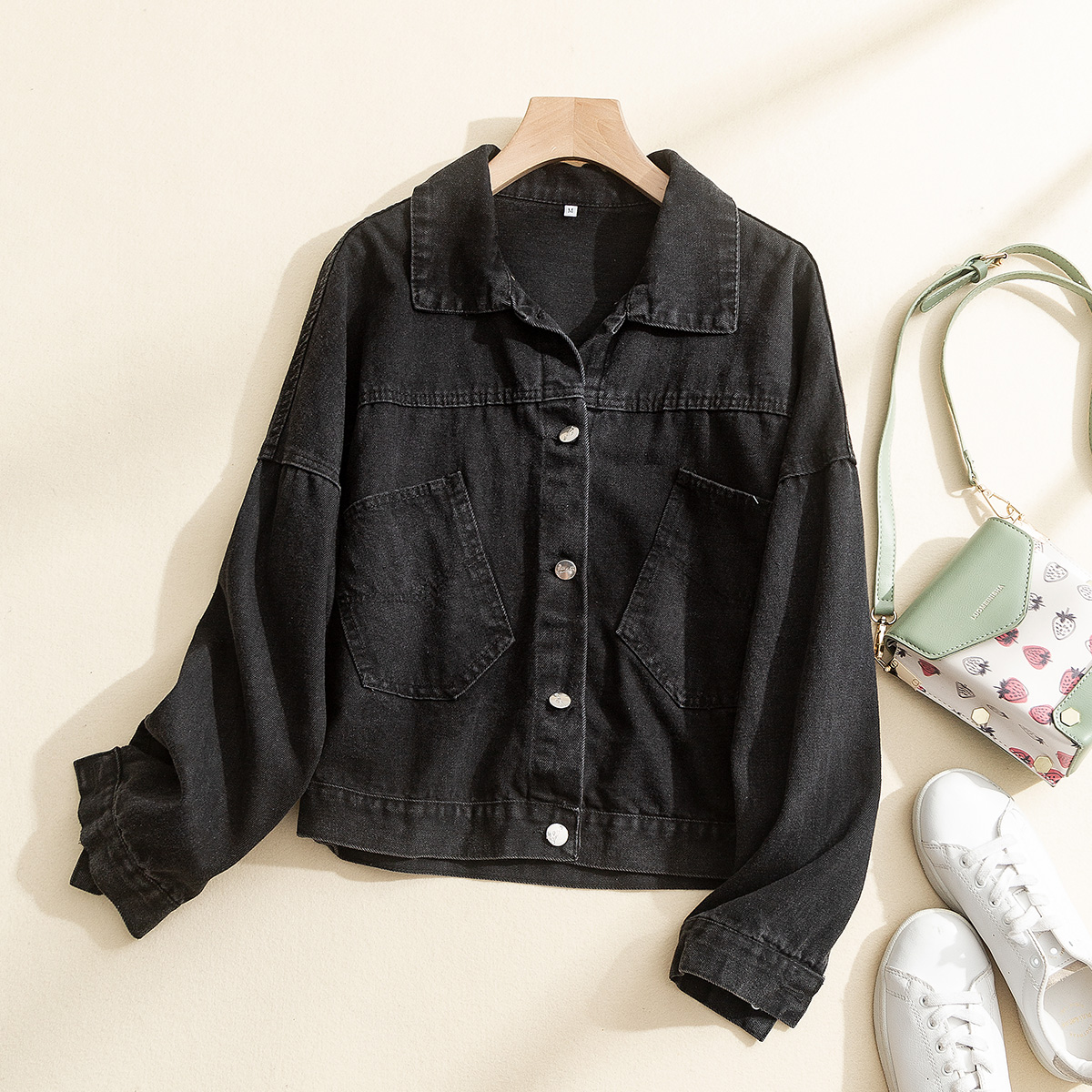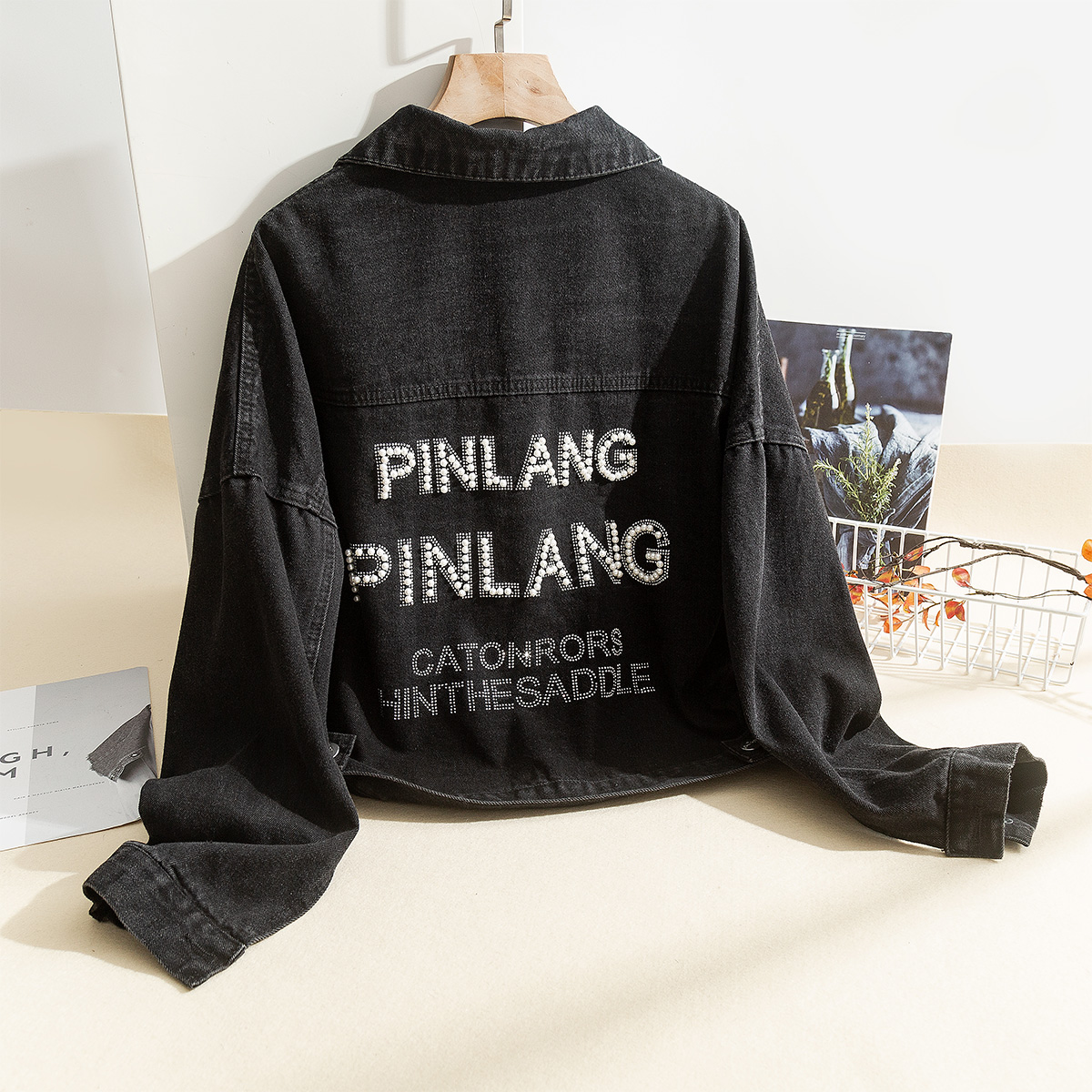拉夏贝尔短款牛仔外套女装2024秋装新款薄款宽松春秋小个子夹克J