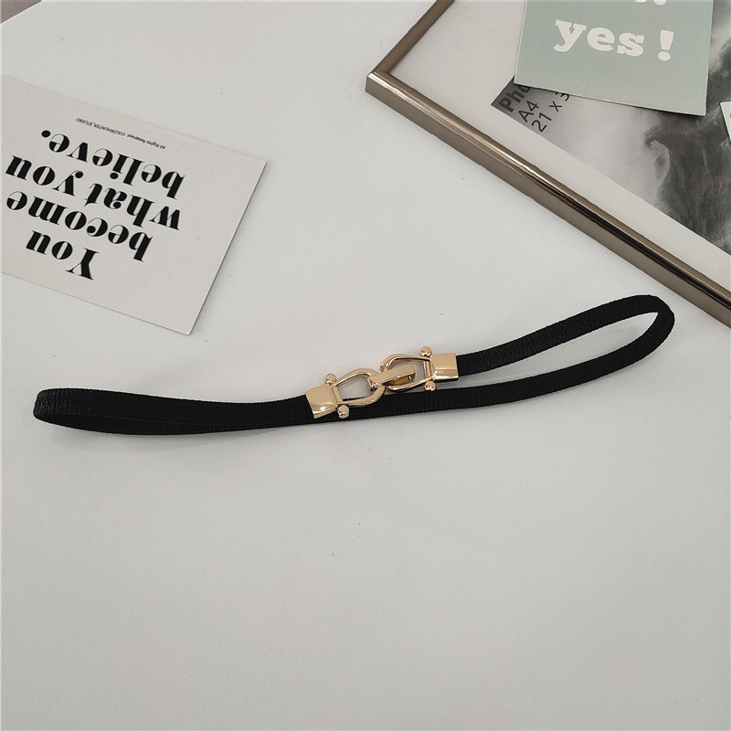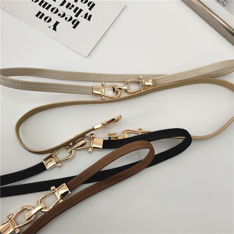 ins风金色卡扣腰带细装饰连衣裙简约弹力腰封女百搭皮带女配裙子