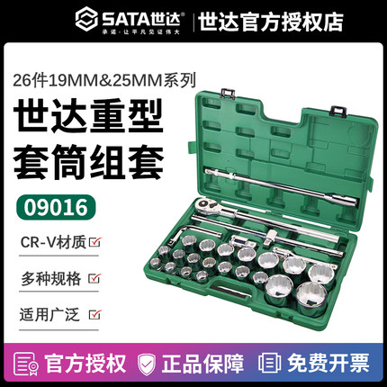 世达汽修汽保工具12角套筒26件19MM/25MM系列重型套筒组套09016