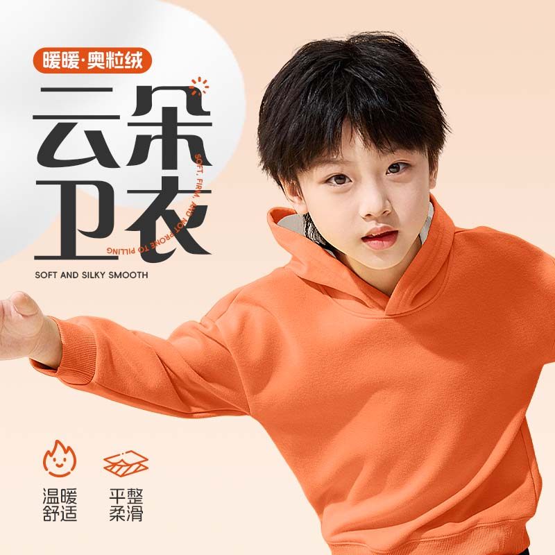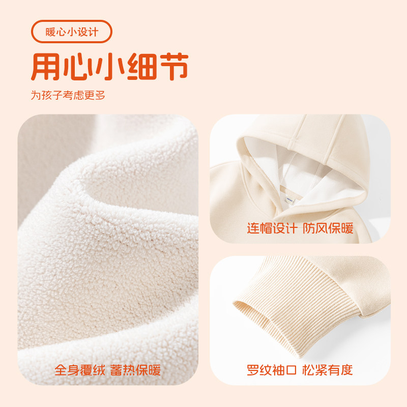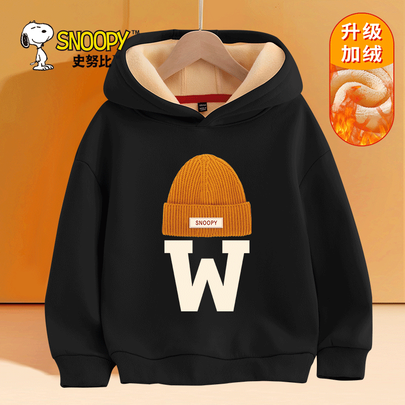 史努比男童卫衣秋冬款男孩加绒帽衫儿童加厚运动衫男大童连帽上衣