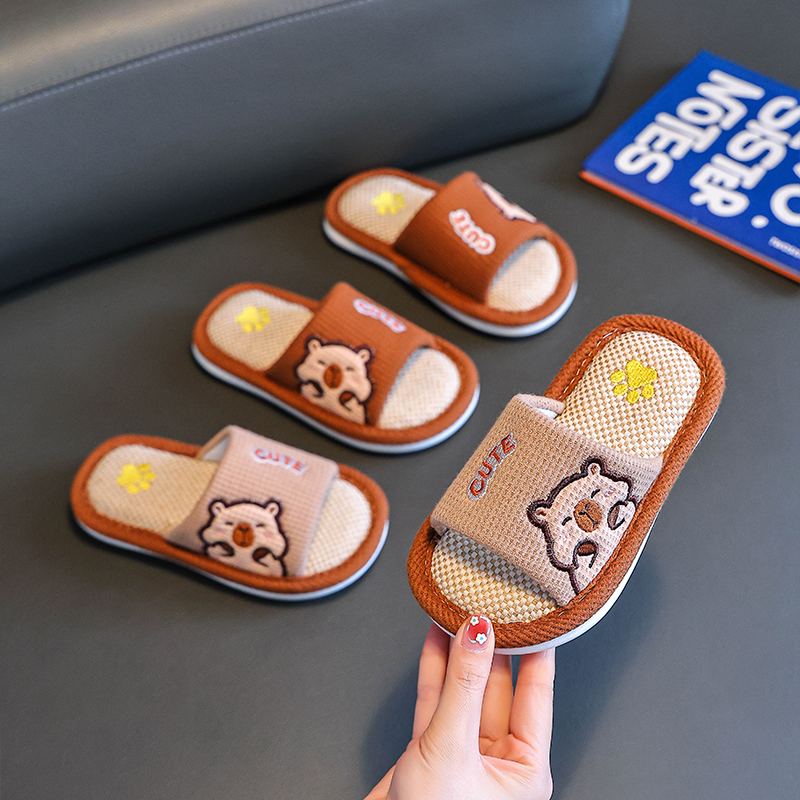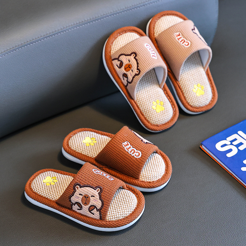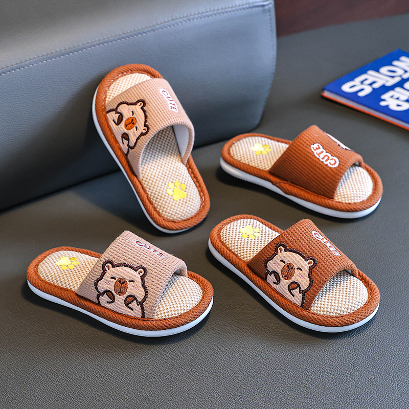 儿童拖鞋男童可爱室内防滑春秋亲子小男孩四季宝宝亚麻布拖鞋女童