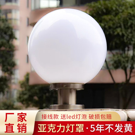 户外柱头灯庭院围墙圆球灯门柱子别墅大门亚克力球形接电LED防水