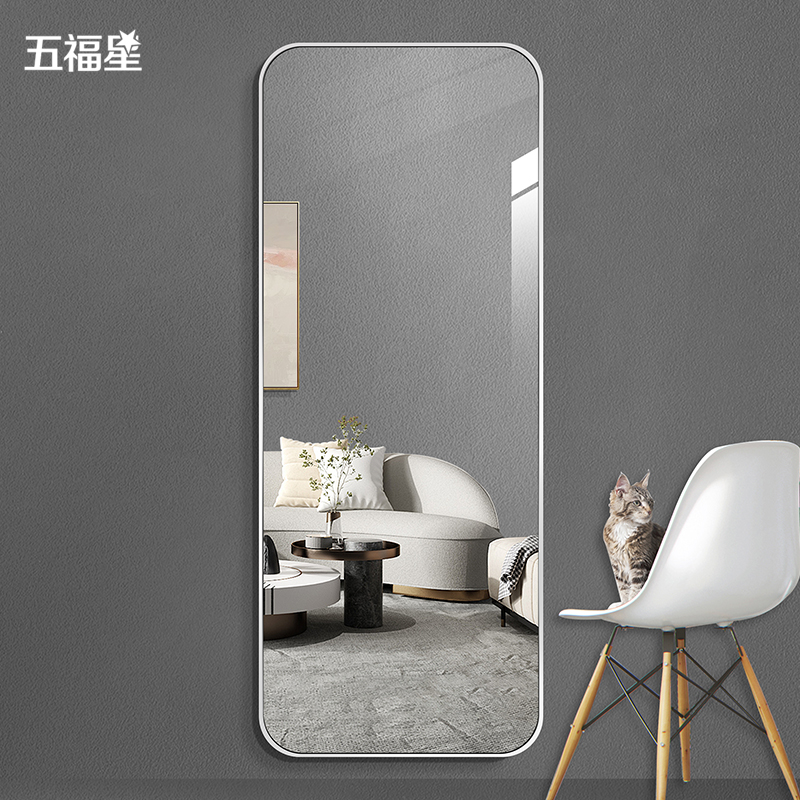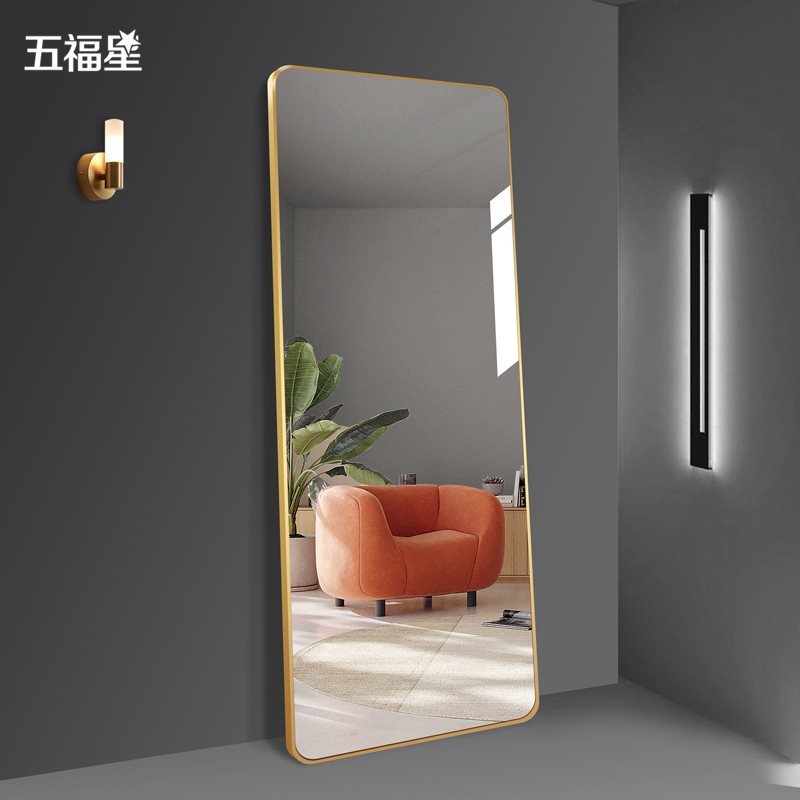 轻奢铝合金穿衣镜圆角壁挂贴墙全身镜子服装店试衣镜家用落地大镜