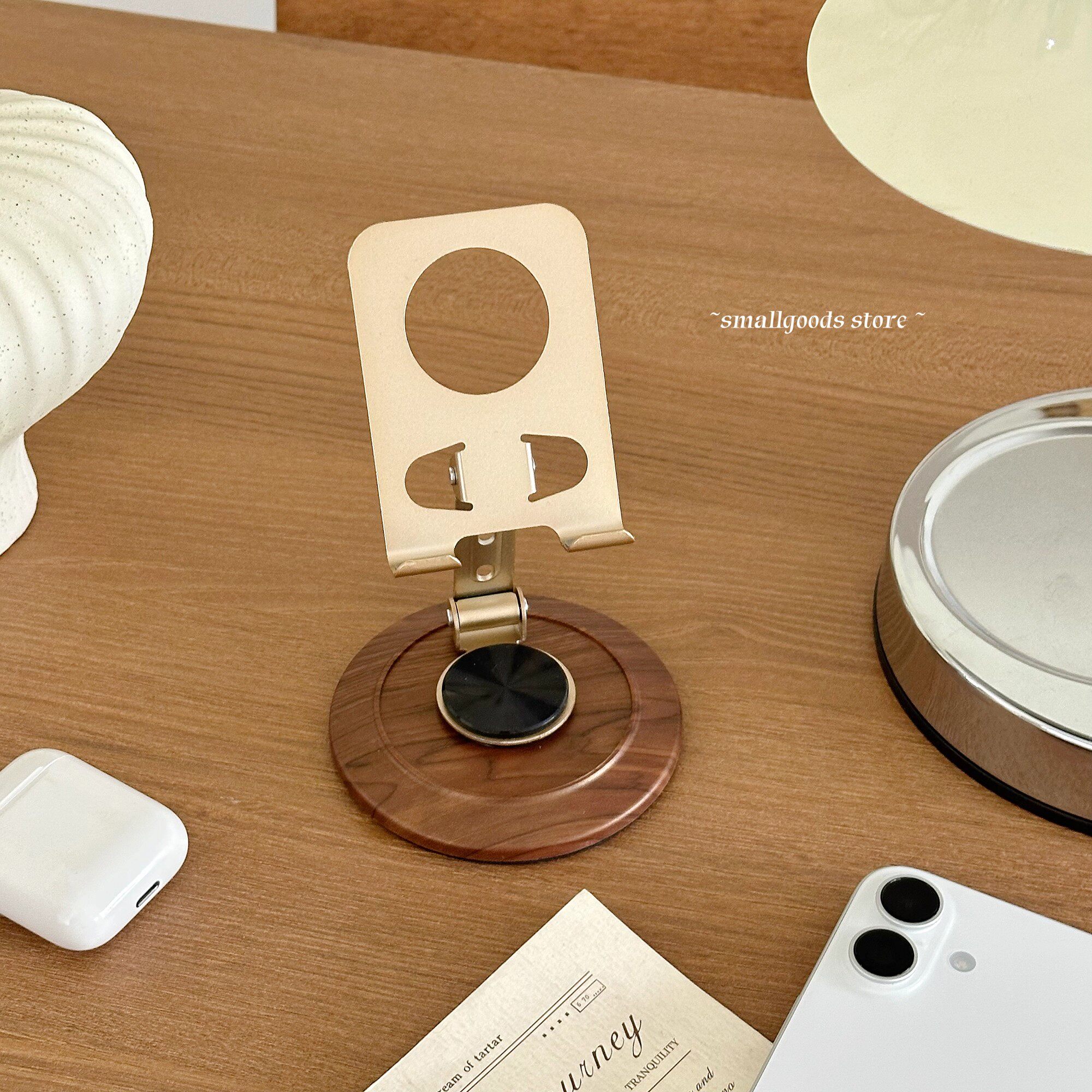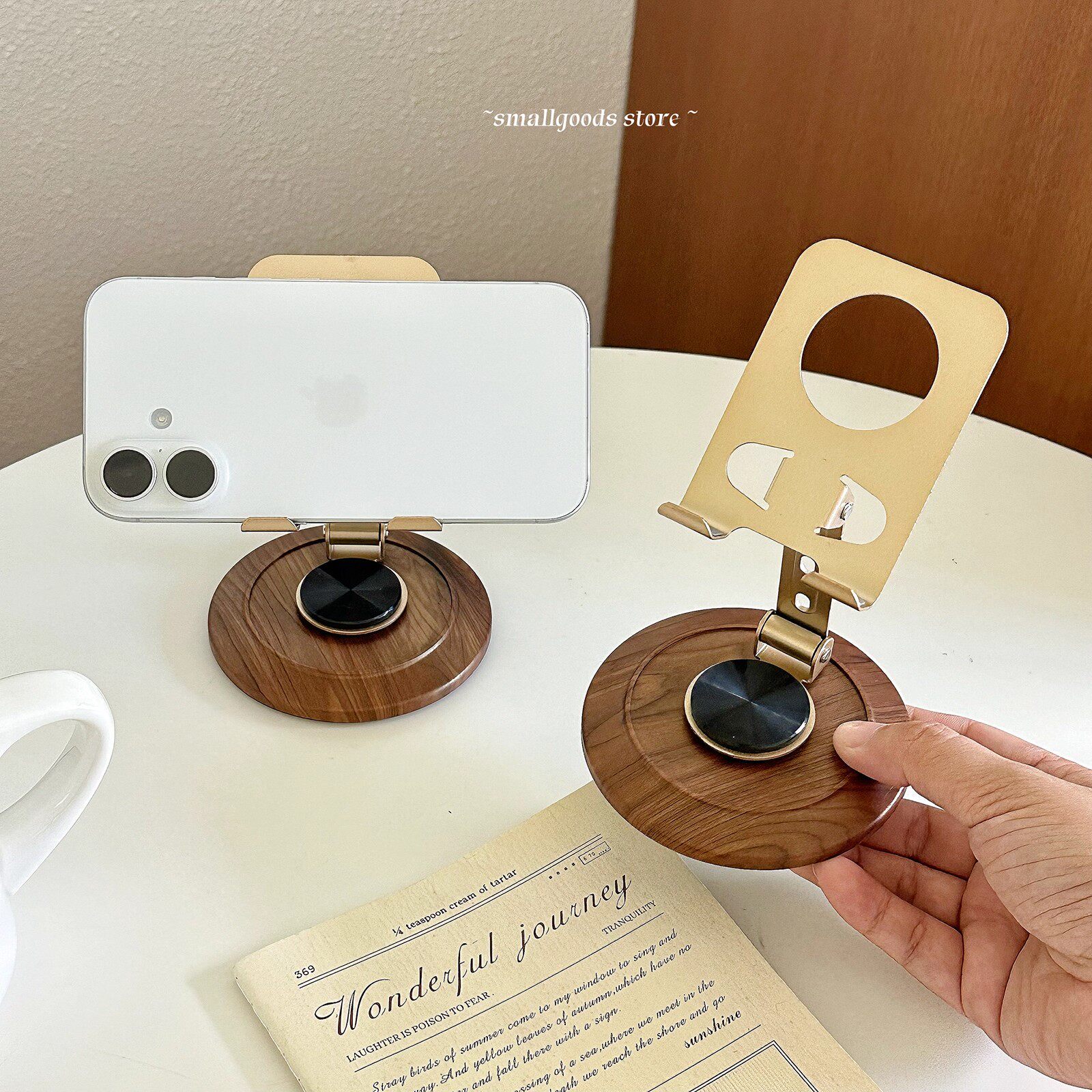 【金属复古木纹】手机支架桌面2026新款ins高级感懒人支架平板ipad桌面360度旋转手机追剧支架直播支架