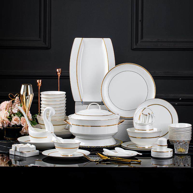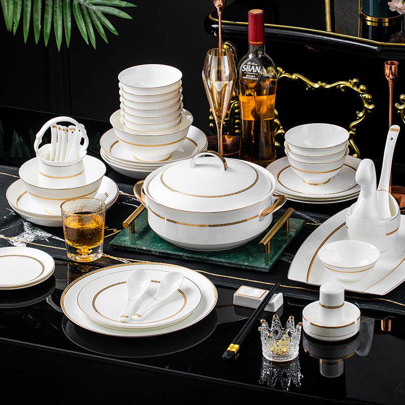 碗碟套装家用轻奢北欧景德镇陶瓷器碗盘筷组合新中式骨瓷餐具乔迁