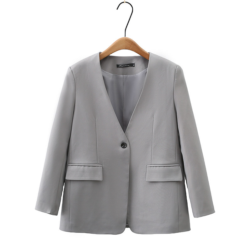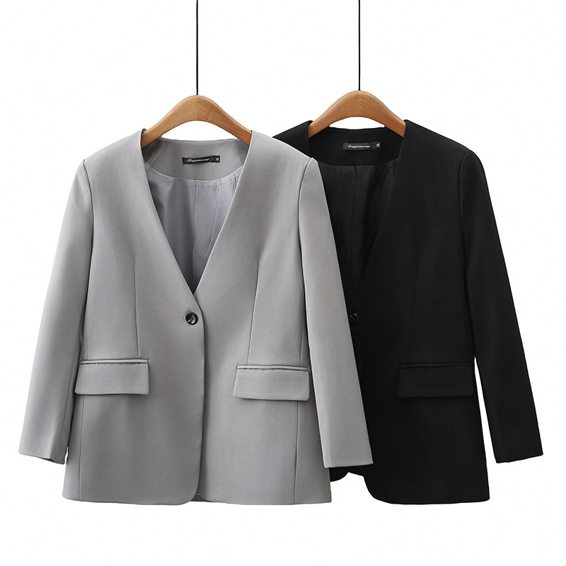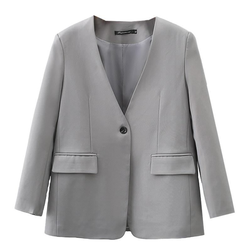 V领西装外套女2023年秋装新款韩版休闲英伦风小个子大码灰色西服