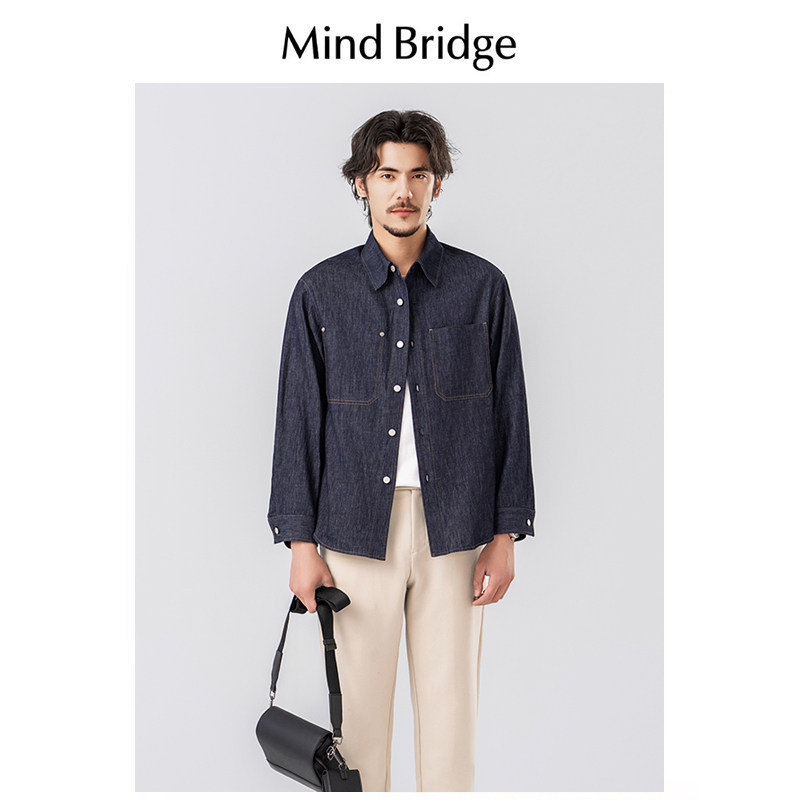 Mind Bridge男装美式工装牛仔衬衫长袖休闲衬衣春秋亚麻潮流外套