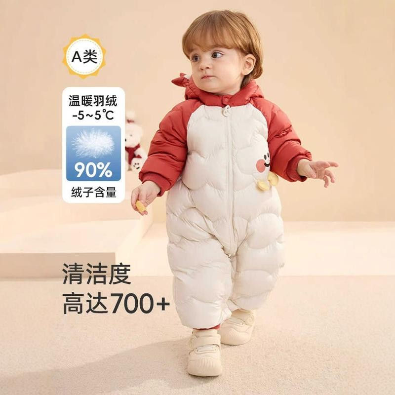 反季婴儿羽绒服连体衣宝宝哈衣新生儿衣服男女童外出爬服加厚保暖