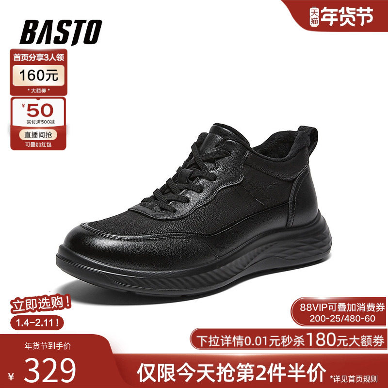百思图2025冬季商场新款户外加绒保暖跑步运动鞋男休闲鞋92M27DM5
