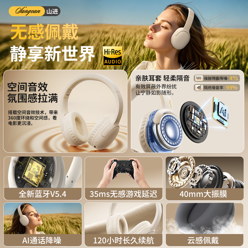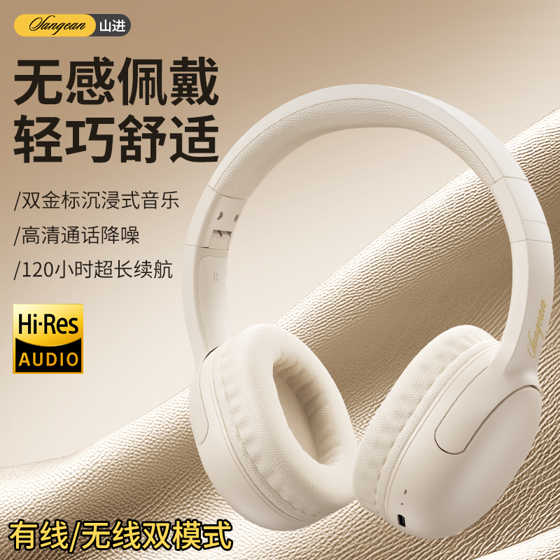 山进H2头戴式蓝牙耳机降噪高音质超长续航音乐运动游戏无线潮流新