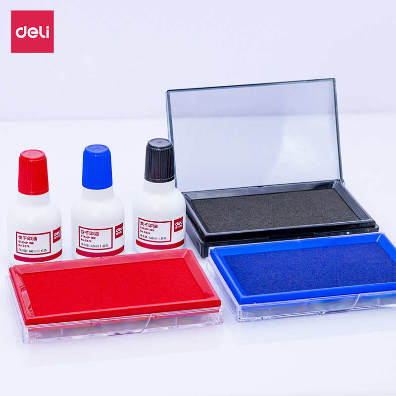 得力大号印台印泥红色方形印尼圆形快干印章印油按手印工具黑色印泥盒财务用蓝色印泥油印章油办公用品